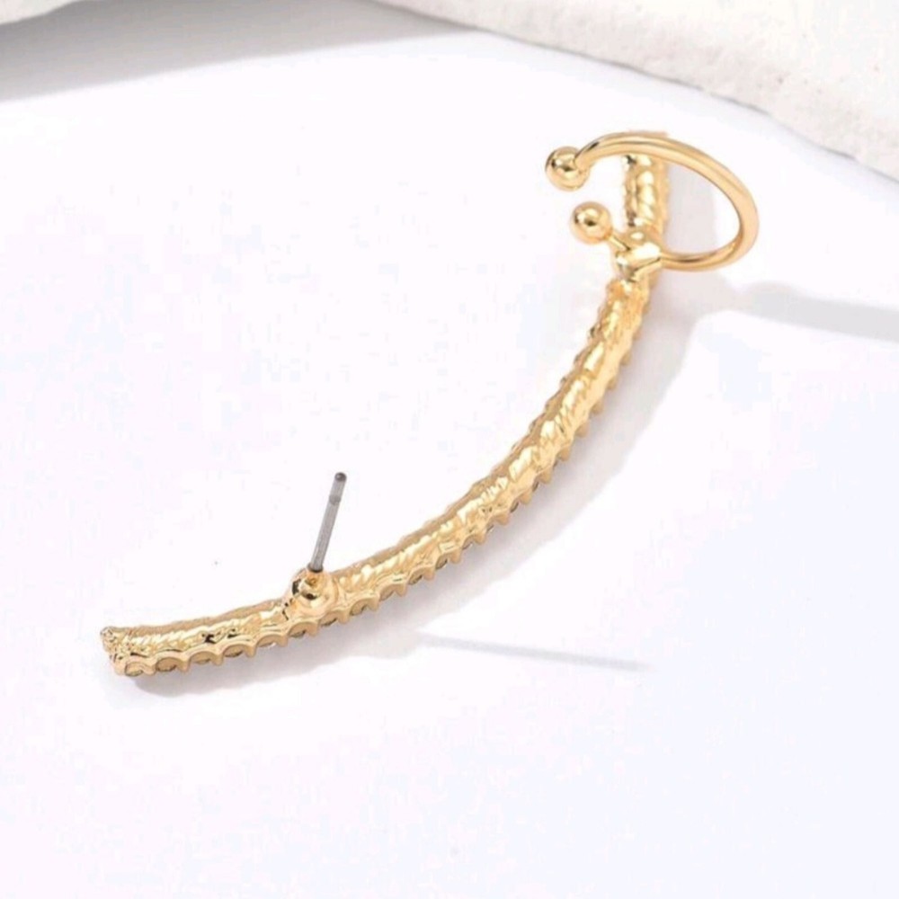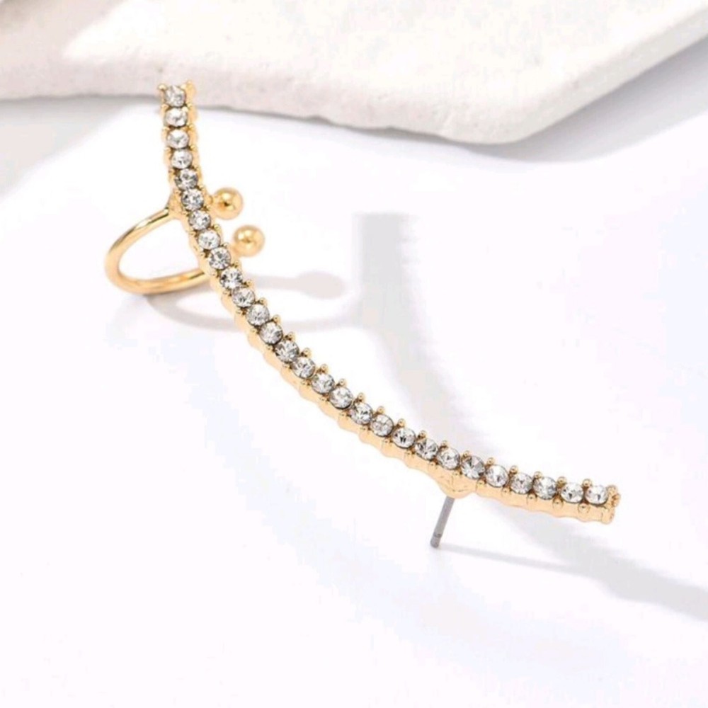 Add a celestial touch to your style with this 18k gold-plated crescent moon ear wrap, a perfect blend of sweet charm and edgy elegance. Embellished with sparkling cubic zirconia, this statement piece wraps around your ear like moonlight dancing on water. Whether you're heading to a vacation party, celebrating a graduation, or simply elevating your everyday look, this ear wrap is your ticket to effortless glam. Lightweight and versatile, it’s designed for comfort and maximum impact. Why settle for ordinary? Channel your inner moon goddess and make every outfit unforgettable—grab yours today!
