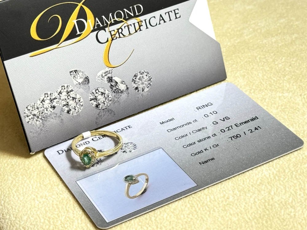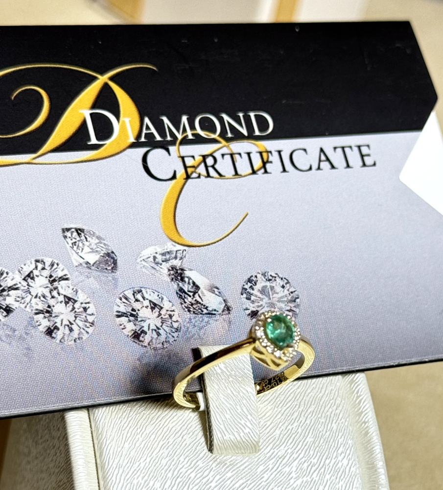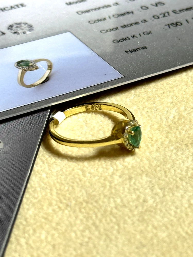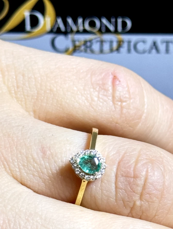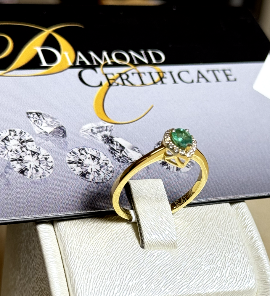 18k Yellow Gold Ring with Certified Emerald & Diamonds 2.41g