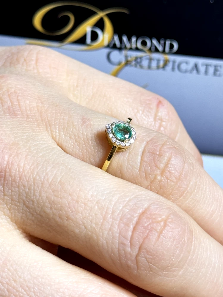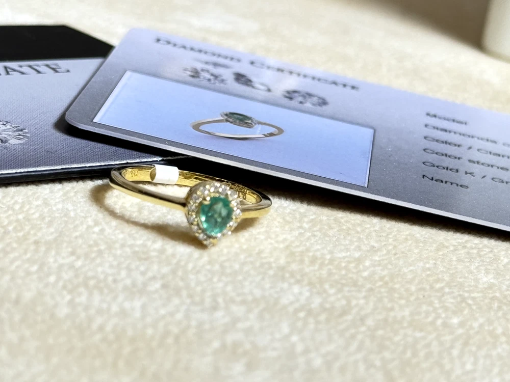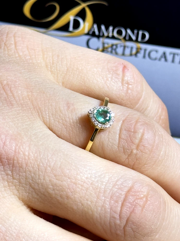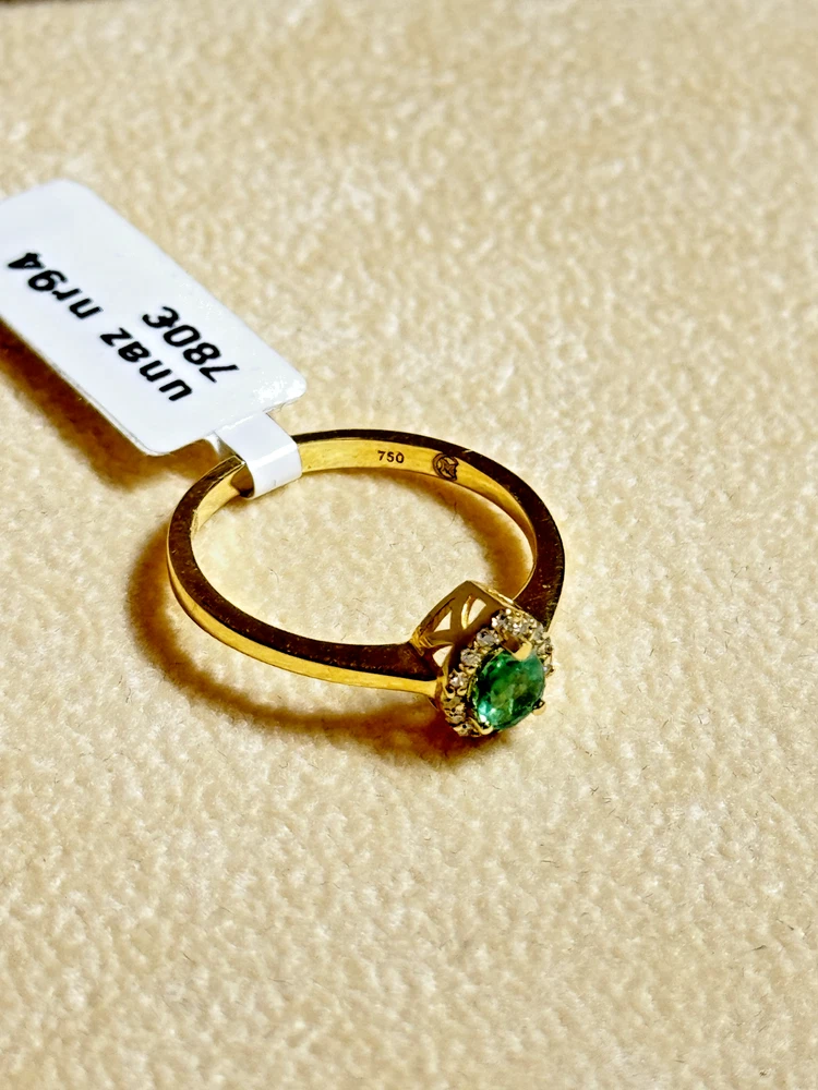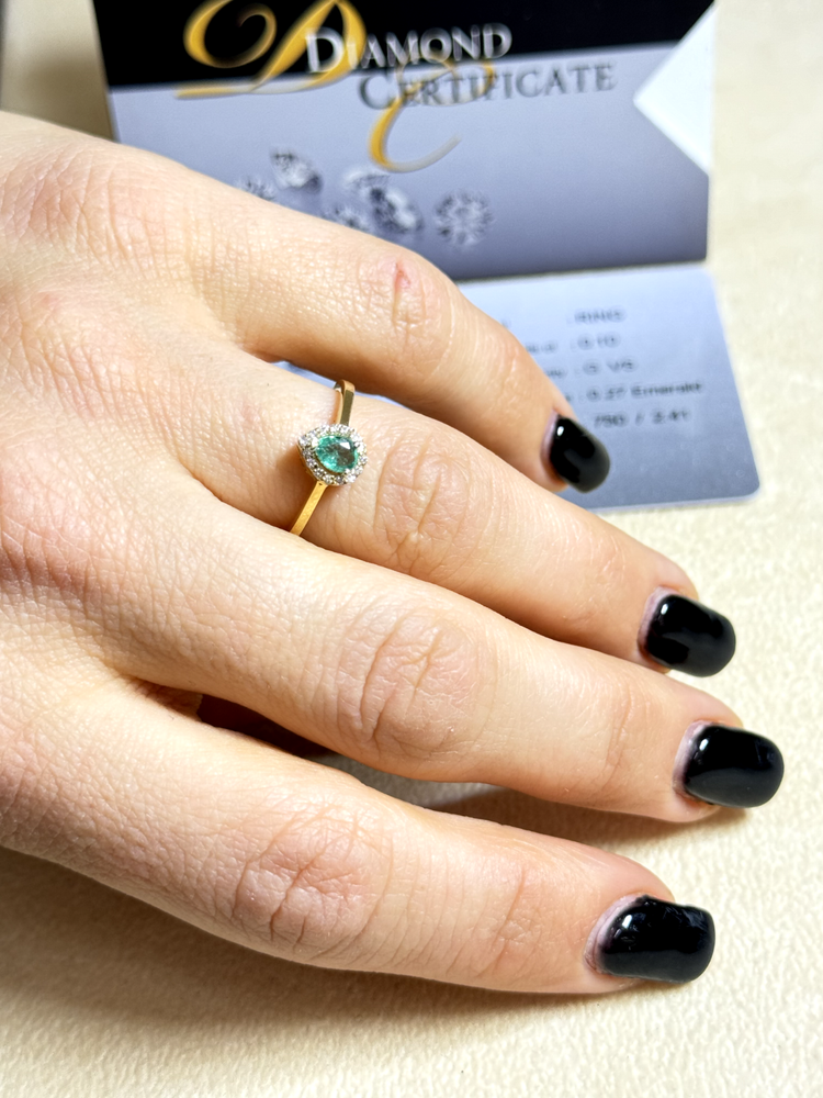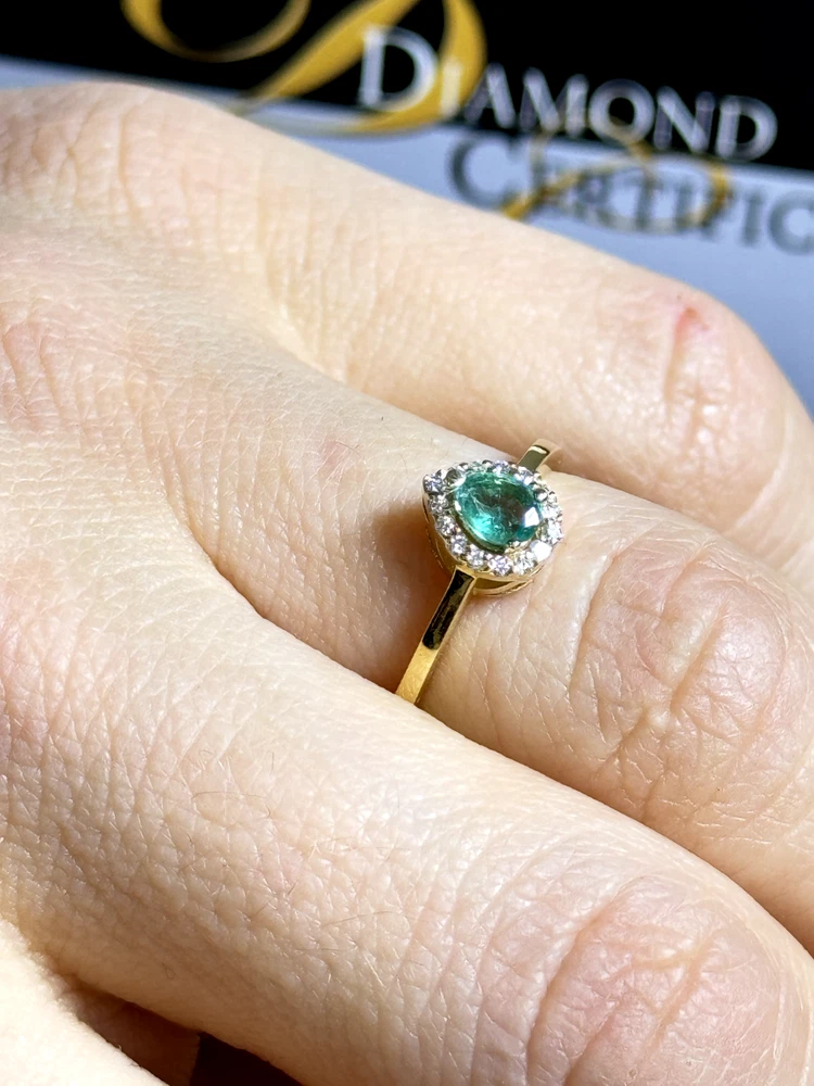 18k Yellow Gold Ring with Certified Emerald & Diamonds 2.41g