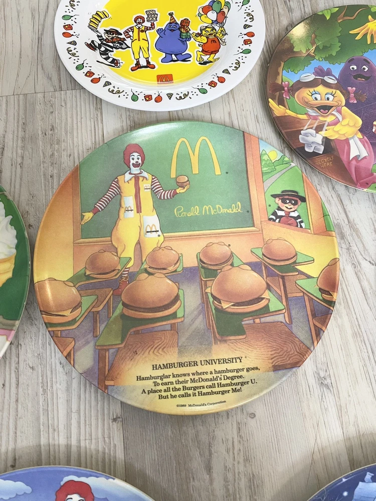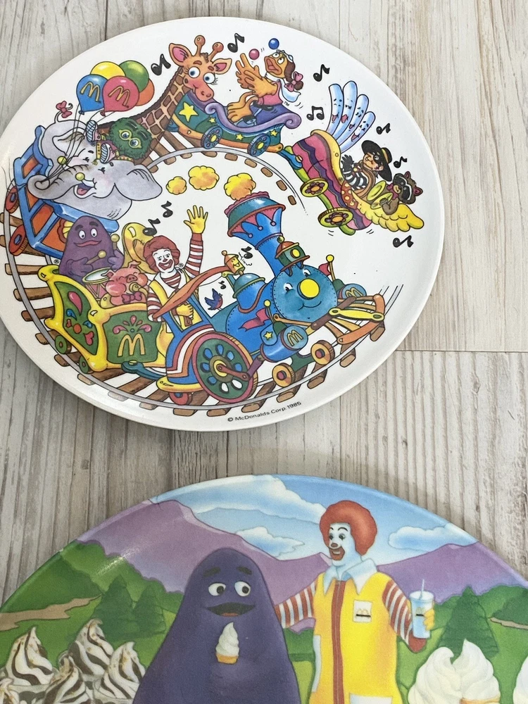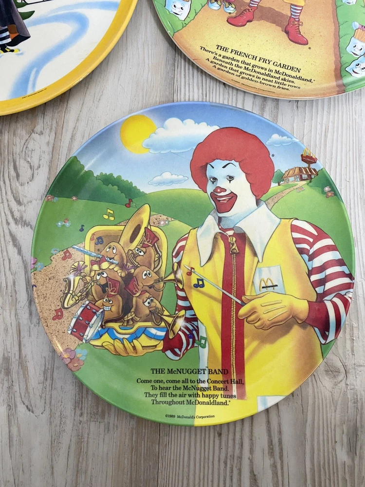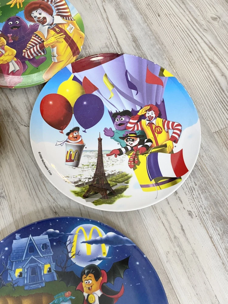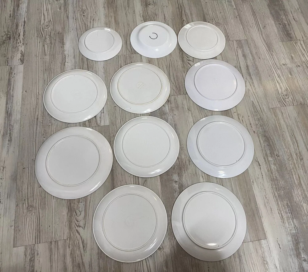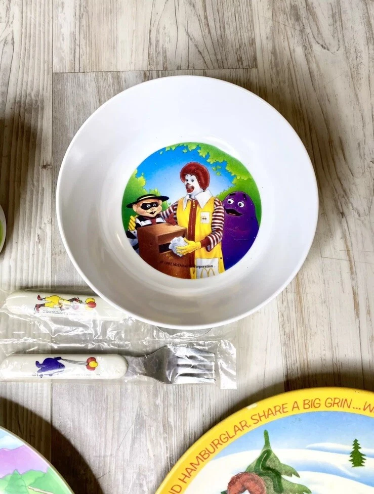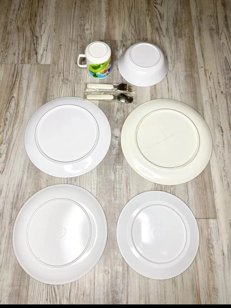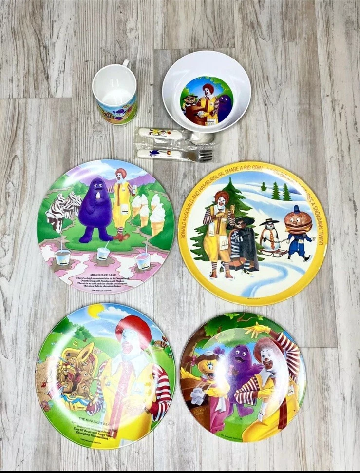 18 Plates total 14 are melamine plastic 1 is glass the small birthday party They range from years 1977- 2000 These are pre-owned some have scratches / flaws The 1977 plate is cracked Bowl Cup Collector Spoon Fork ( new sealed)