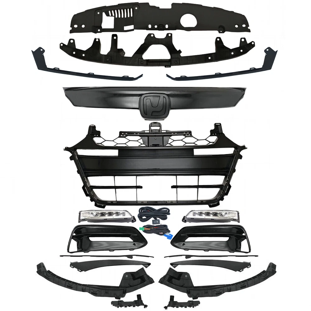 18PC For Accord Sport 2018-2020 Gloss Black Grille Mesh Molding Fog lights Bezel Features: High quality value kits 100% brand new in factory package. Made from high grade comparable materials An excellent replacement parts for your vehicle,No Modification Needed. Item OE number: 71125-TVA-A00;71150-TVA-A00;71167-TVA-A11;71166-TVA-A01;71162-TVA-A11;71161-TVA-A01;71122-TVA-A11,71121-TVA-A01;71111-TVA-A50;71107-TVA-A10;71102-TVA-A10;33950-TVA-A01;33900-TVA-A01;71129-TVA-A00;71124-TVA-A00;71119-TVA-A00;71114-TVA-A00;71198-TVA-A01;71193-TVA-A01;71190-TVA-A00;71140-TVA-A00 Fitment: 2018-2020 Honda Accord 4 Door Sport Package Included: 1x Front radiator support cover 1x F ront bumper center upper support beam 1x F ront center gloss black grille molding with base 2x F ront grille gloss black extension moldings with base 1x F ront bumper lower grille mash gloss black 2x F og lights led with bulb Harness 2x F og light bezels gloss black 2x F ront grille rubber molding extension seal strip 2x F ront bumper upper garnish 2x F ront headlight brackets 2x F ront bumper brackets Installation : Direct Replacement. Perfect fitment. No modification required. Product does not come with installation instructions, please refer to a shop/factory manual for installation.