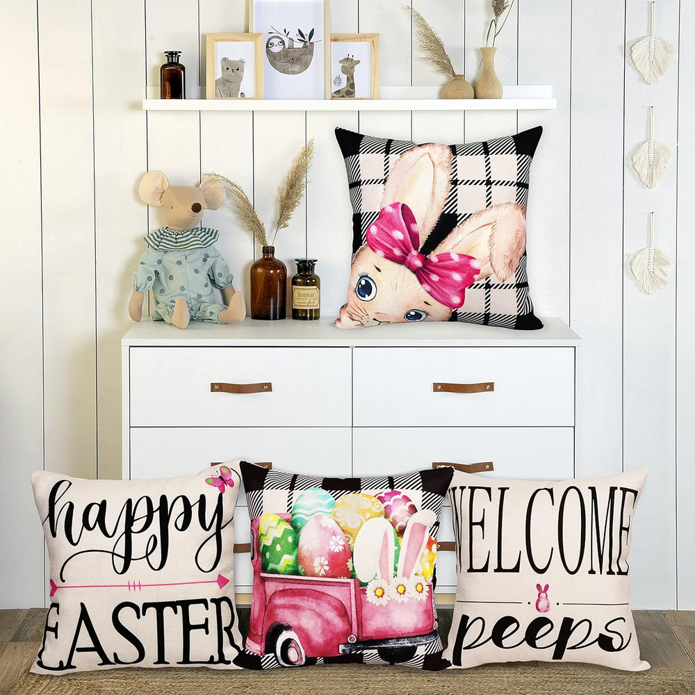 Store New Arrivals Add to Favorite View Feedback Contact Fast deliveries to the customer's home Quality customer service John Make the customers happy! Easter Pillow Covers 18X18 Set of 4 - Easter Decorations Throw Couch Pillow Cases for Home Holiday Linen Zipper Pillowcase Party Decor Description 4 Pieces Easter pillow covers included.Our Easter pillow covers is made of linen.Single-sided printing pattern.Solid color on the back. Measurement - The Easter pillow covers are approx. 18" x 18" / 45cm x 45cm (1-2cm deviation). Pillow insert are Not included.Invisible zipper closure on bottom of pillow to easily slip your pillow covers over any insert.Hidden zipper design, beautiful and practical. Wash with mild detergent,spot cleaning is recommended.If you need to wash the pillow covers,turn inside out,wash on delicate cycle and lay flat to dry.Warm iron on reverse when necessary. Easter pillow covers 18x18-Suitable for decorating your sofa,bench,bed,car,porch swing,lounge,etc.Add a festive atmosphere to Easter Decorations or holiday events.They are also a festival gift to your friends or family.a festive atmosphere to Easter Decorations or holiday events.They are also a festival gift to your friends or family. Product Description Item model number easter pillow cover 18 x 18 Style Traditional Weave Type Plain Weave Number of Items 4 Pattern Animal Print Theme Car,Holiday Number of Pieces 4 Unit Count 4.0 Count Room Type Living Room, Lounge, Home Office Batteries required No Product Dimensions 18"L x 18"W Material Linen Shape Square Closure Type Zipper Item Weight 11.7 ounces Is Euro Pillow Size No Occasion Holiday,Party Special Feature Fade Resistant Pillow Type Throw Pillow Recommended Uses For Product Outdoors, Home Product Care Instructions Machine Wash ABOUT US We offer the best prices around on high quality products. Our E-store includes media such as books, movies, music and games while offering electronics, toys, sporting apparel, clothing, tools, general home, garden items and more. SHIPPING We are always working hard to ensure your package arrives as soon as possible. Please understand that some factors like weather, high postal traffic, and the performance of shipping companies are outside of our control. We offer free shipping to the lower 48 states and ship within 2 business days of payment, usually sooner. We do not accept P.O. Boxes. Please provide a physical address. For shipping outside of the continental USA, we only use eBay's Global Shipping Program. The item is shipped to KY and then sent to the rest of the world. International customers are responsible for all duties and taxes. Continue to 'check out' to calculate costs for shipping the item to your country. Messages regarding eBay's Global Shipping Program MUST be directed at eBay EXCLUSIVELY. RETURNS We offer a 30-Day Return Policy on items in which you are not completely satisfied with. You have the option of a full-refund or an exchange of the item. No returns are available on items shipped outside of the USA PAYMENT We accept PayPal. CONTACT US This page content is yet to come Please ad us to your favorite seller and visit again later Thank You CUSTOMER SATISFACTION We try our very best to make sure every customer is completely satisfied. If there's a problem, message us! We're happy to help. WE ACCEPT