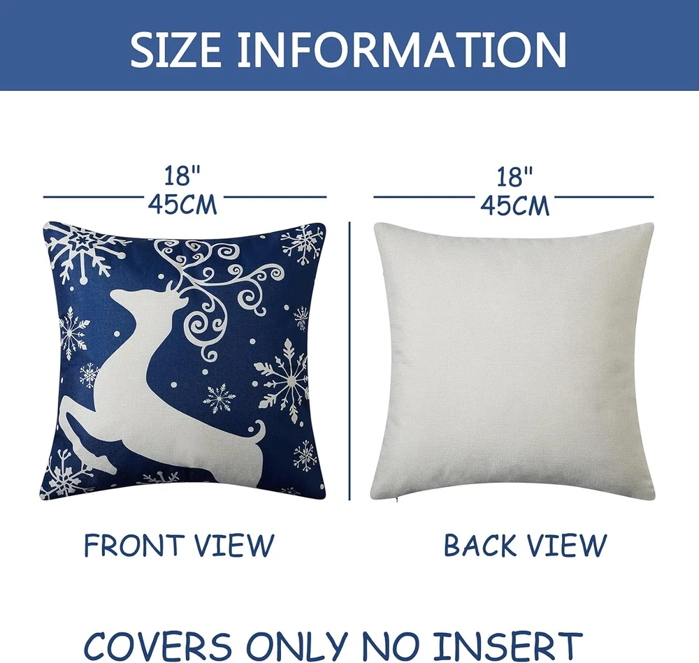 Store New Arrivals Add to Favorite View Feedback Contact Christmas Decorations Pillow Covers 18X18 Set of 4,Farmhouse Christmas Decor for Home,Tree Deer Snowflakes Rustic Xmas Pillow Case Winter Holiday Decorations Throw Cushion Case for Home Couch Description Item model number B096M7PGQS Style Classic Weave Type Plain Number of Items 4 Pattern Print Country of Origin China Theme Holiday,Tree Number of Pieces 4 Unit Count 4.0 Count Room Type Living Room Batteries required No Product Dimensions 17.72"L x 17.72"W Material function(f) {var _np=(window.P._namespace("DetailPageProductOverviewTemplatesJava"));if(_np.guardFatal){_np.guardFatal(f)(_np);}else{f(_np);}}(function(P) { P.when('A').execute(function(A){ A.on('a:truncate:po-attribute-truncate-1:updated', function(data) { var isTruncated = !data.truncateInstance.getIfTextFits(); var seeMoreElement = document.getElementById('po-attribute-see-more-id-1'); if(seeMoreElement) { seeMoreElement.style.display = isTruncated ? '' : 'none'; } }) }); })); These Christmas throw pillow covers are made from top quality breathable linen material that is soft, skin-friendly, comfortable and tightly woven. See more Seasons winter Closure Type Zipper Indoor/Outdoor Usage Indoor Water Resistance Level Not Water Resistant Item Weight 13.1 ounces Is Euro Pillow Size No Occasion Decoration,Holiday,New Year Special Feature Fade Resistant Color Blue Shape Square Recommended Uses For Product Festival, Car, Home Fabric Type These Christmas Throw Pillow Covers Are Made from Top Quality Breathable Linen Material That is Soft, Skin-friendly, Comfortable and Tightly Woven. Product Care Instructions Machine Wash These Christmas Throw Pillow Covers Are Made from Top Quality Breathable Linen Material That is Soft, Skin-friendly, Comfortable and Tightly Woven. đăPackage Includedă- Christmas Pillow Covers 18x18 Set of 4 ( Not include Insert or filler ). TIPS: The christmas decor pillow cases are 18 x 18 inch (about 45x45cm). Pattern is only on the front and no printing on the back. âăComfortable & Quality Materială- These blue winter Christmas pillowcases are made of rustic linen,comfortable & soft touch, child and pet friendly.NO fading or abrasion, Can be washed many times and recycled. đăLovely Designă- These pillow covers have different Christmas elements: Christmas tree, lifelike deer, beautiful snowflakes. Perfect for home decoration at festival like Christmas, New Year Eve, Carnival Bunting. đăGreat Addition for Christmas Decoră- These 4 pack blue Christmas cushion cases are a great addition to winter and Christmas decorations. The classic and fashionable farmhouse design instantly add a rustic and festive atmosphere. The perfect winter Christmas decoration, suitable for your sofa, bed, bench, living room, etc. This is also a great holiday gift for family and friends. đŻăINVISIBLE ZIPPERă- The zipper is hidden and smooth, so you can easily insert or remove the pillow without affecting the aesthetics. Encrypted sewing at the zipper, not easy to tear, can be used with confidence. Product Description CAROMIO aims to add a lot Chirstmas atmosphere to your home by changing different style throw pillow covers. CAROMIO Christmas Pillow Covers with a neat design and look are exquisite and designed for Christmas decor, matching your interior or exterior decor. Unique design and made of durable material with good workmanship, the Xmas pillow covers are a great memorable Christmas gift for your friends and loved ones. CAROMIO Christmas Decorations Pillow Covers 18x18 Set of 4 Christmas is Coming! CAROMIO Xmas pillow cases are perfect decorations. They are suitable for living room, bedroom, sofa, sofa, car, party, balcony, patio, etc. And the Christmas pillowcases complement various styles of home decorations. Christmas Throw Pillow Covers High Material Christmas Decoration Design Hidden Zipper Machine washable Fine Workmanship Xmas Decorative Cushion Covers 4 Pack Christmas classic throw pillow covers include different patterns such as Christmas Trees, Snow Flakes, Deer,and Merry Christmas to make your home full of Christmas atmosphere with strong Christmas feel. Durable Material The Xmas rustic throw pillow covers are made of cotton linen, comfortable and soft. NO fading or abrasion, can be washed many times and recycled. Size Information 18 x 18 inches / 45 x 45 cm (set of 4, only pillow covers, insert not included) Hidden Zipper The zipper is hidden and smooth, so you can easily insert or remove the pillow without affecting the aesthetics. Encrypted sewing at the zipper. ABOUT US We offer the best prices around on high quality products. Our E-store includes media such as books, movies, music and games while offering electronics, toys, sporting apparel, clothing, tools, general home, garden items and more. SHIPPING We are always working hard to ensure your package arrives as soon as possible. Please understand that some factors like weather, high postal traffic, and the performance of shipping companies are outside of our control. We offer free shipping to the lower 48 states and ship within 2 business days of payment, usually sooner. We do not accept P.O. Boxes. Please provide a physical address. For shipping outside of the continental USA, we only use eBay's Global Shipping Program.The item is shipped to KY and then sent to the rest of the world. International customers are responsible for all duties and taxes. Continue to check out in order to calculate costs for shipping the item to your country. Messages regarding eBay's Global Shipping Program MUST be directed at eBay EXCLUSIVELY. RETURNS We offer a 30-Day Return Policy on items which you are not completely satisfied with. You have the option for a full-refund or an exchange of the item. No returns are available on items shipped outside of the USA. PAYMENT We accept PayPal. CONTACT US This page content is yet to come Please ad us to your favorite seller and visit again later Thank You CUSTOMER SATISFA