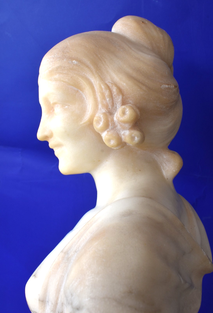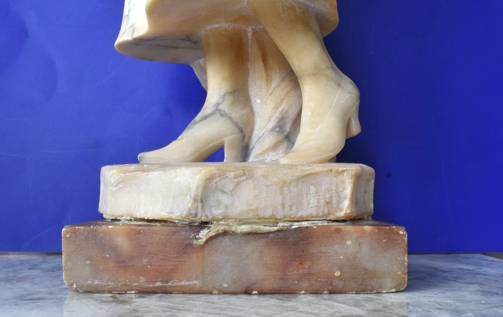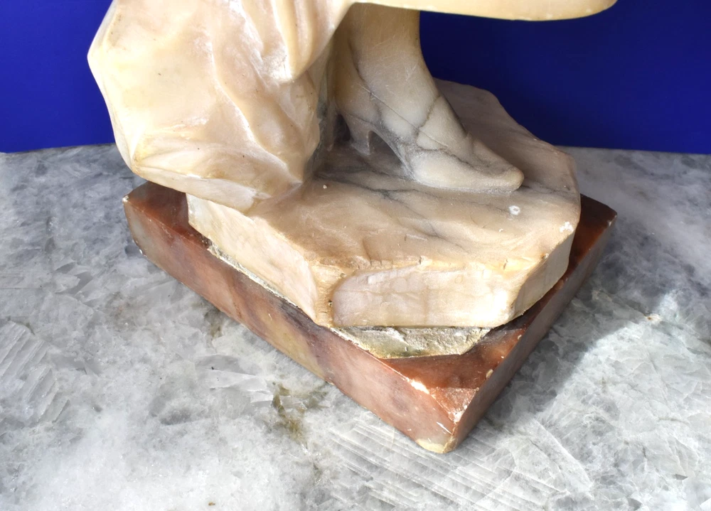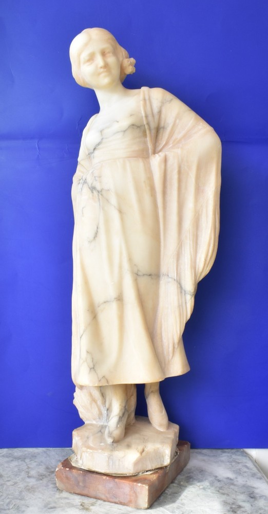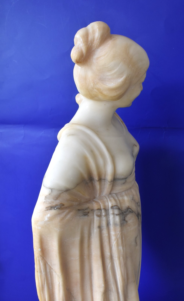 19" Antique Italian hand carved Alabaster Marble Beatrice from Dante maiden statue figure sculpture! Nice flat back depth for shelf or mantle display. Beautiful veined stone, 19" tall x 7" across back, no chips or restoration to Beatrice. Chips to marble base may be a very old replacement? Thanks for considering my listings today, I'll strive to exceed expectations on your Purchase. Please check my feedback of 10450 positives, selling for over 28 years on ebay, before that the rest of my life :^). Hope you will check and bookmark my listings for new items listed daily!