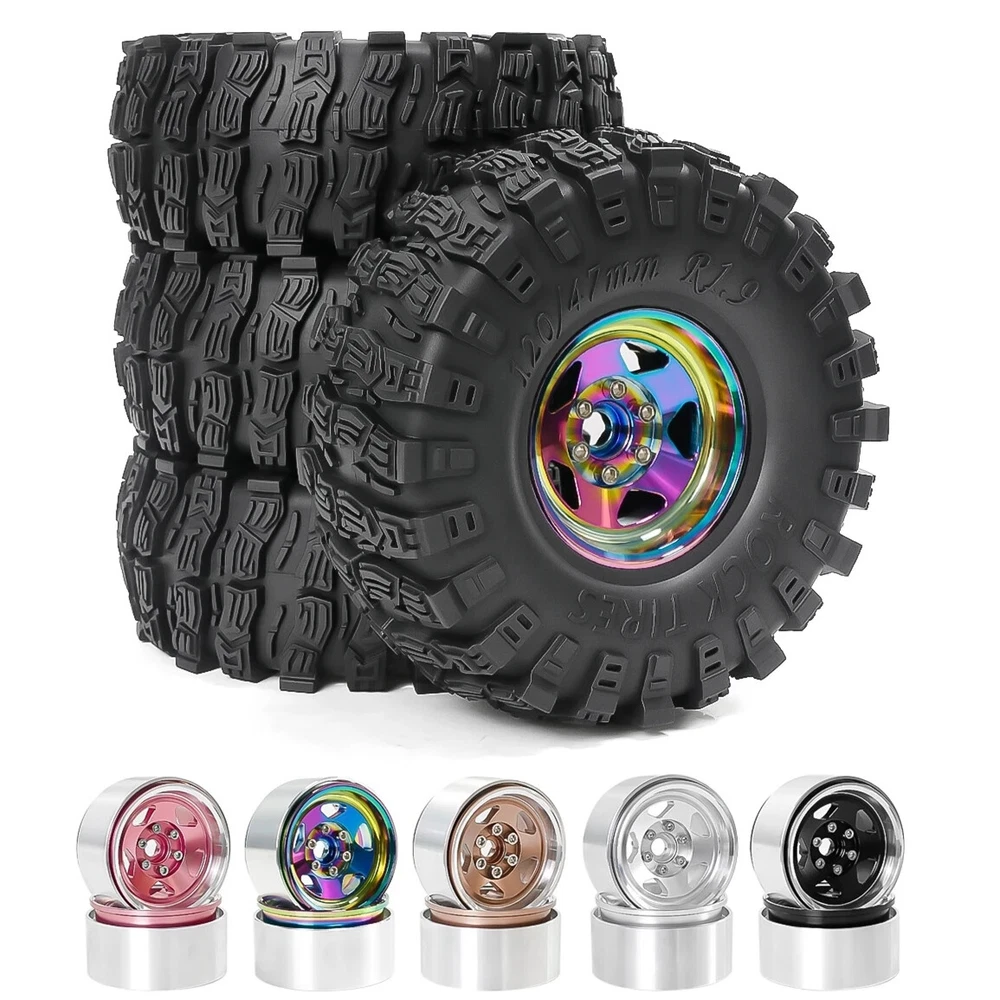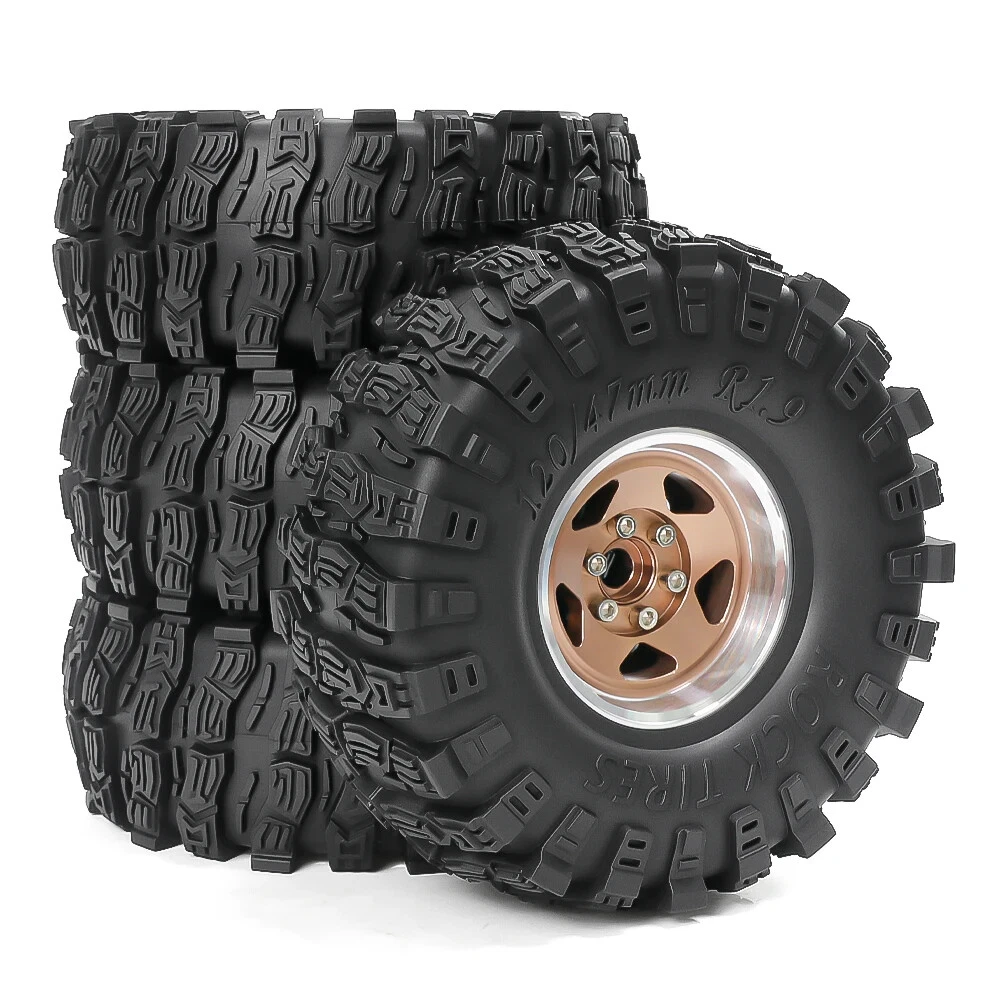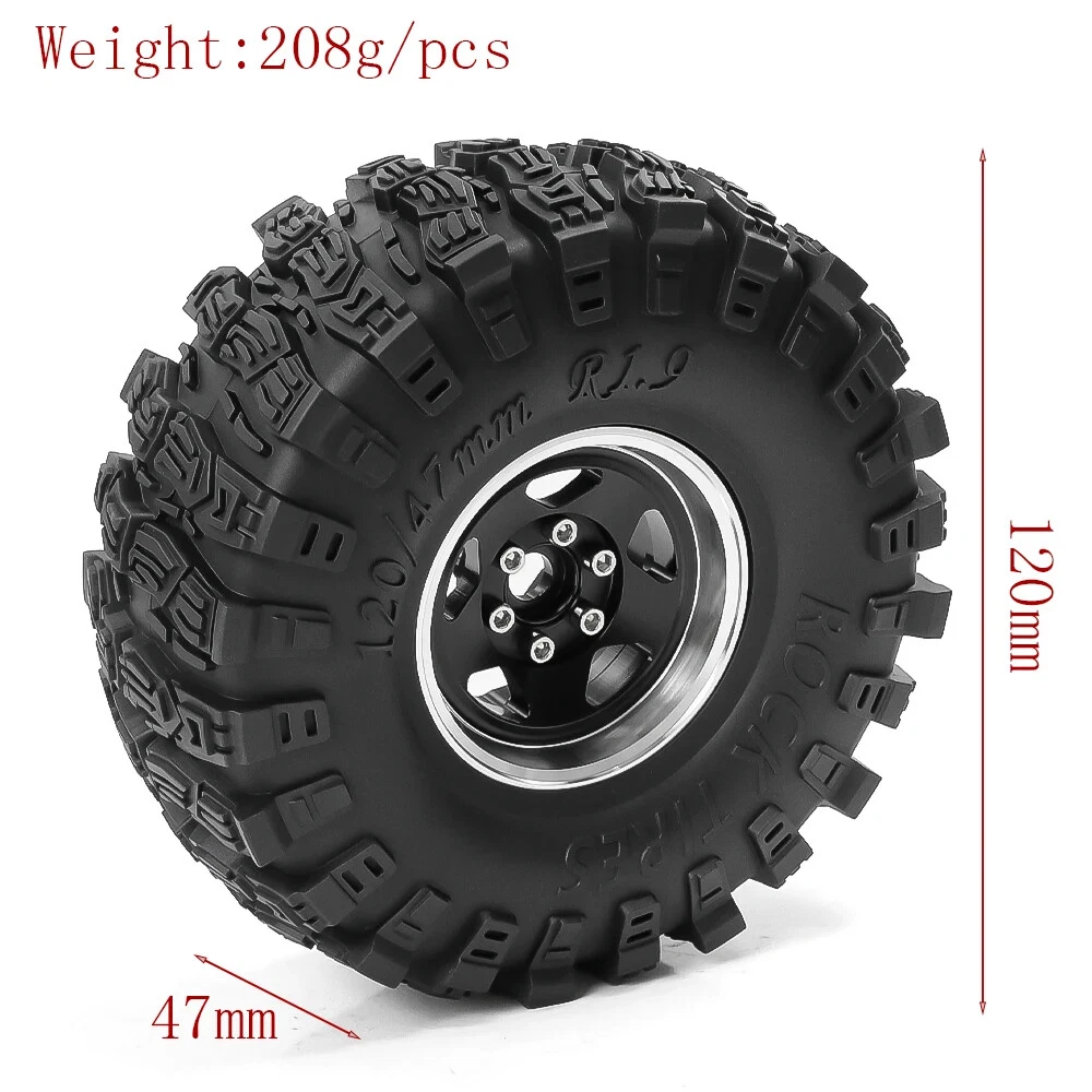 4pcs 120mm 1.9" Metal Beadlock Wheel Rim Rubber Tire Set for 1/10 RC Crawler Car Traxxas TRX4 RC4WD D90 D110 Axial SCX10 MST Features: 100% band new, with foam insert Exquisite and simulated details Extreme scale all terrain tire High Wear-resistant and excellent durability Specifications: Material: Metal+Rubber Quantity: 4Pcs Outer Diameter: 120mm Width: 47mm Adapter: 12mm Weight: 208g/pcs Suit for 1/10 RC Crawler Car Axial Wraith SCX10 Capra Traxxas TRX4 D90 Note:The size may have 1-2mm differs due to manual measurement. Thank you for your understand. Package List: 4 * RC Car 1.9 Inch Wheel