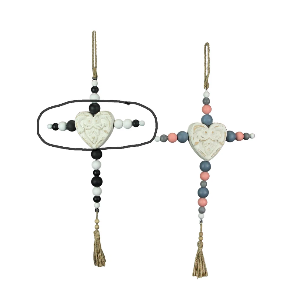 NOTE: DUE TO THE BLACK AND WHITE BEADS ARE INCORRECT this item is being sold at a reduced price. Please see last photo for damages/defects. Add some spiritual style to your home with this set of decorative wall hanging crosses. Creatively crafted from wood the white, black, blue, and pink painted finish and beaded design lets it compliment a variety of home decor styles. Each measure 10.25 inch wide, 1 inch depth, 19.5 inch high, the built-in 4 inch drop twine hangers makes it quick and easy to display them in your home kitchen, living room, bedroom, or bathroom. A great gift for yourself or friends and family. Our eBay Store About Us Add to Favorite Sellers 19 Inch Wooden Bead Cross Wall Hanging Home Decor Modern Decorative Art Set of 2 NOTE: DUE TO THE BLACK AND WHITE BEADS ARE INCORRECT this item is being sold at a reduced price. Please see last photo for damages/defects. NOTE - DUE TO THE BLACK AND WHITE BEADS ARE INCORRECT this item is being sold at a reduced price. Please see last photo for damages/defects. STURDY MATERIAL - Creatively Crafted From Wood With A Beaded Design In Multiple Colors EASY INSTALL - Built-in 4 Inch Drop Twine Hanger For Quick And Simple Display SUBTLE STYLE - Minimalist Design Compliments A Variety Of Home Decor Themes OVERALL SIZE - Each Measure 10.25 Inch Wide, 1 Inch Depth, 19.5 Inch High NOTE: DUE TO THE BLACK AND WHITE BEADS ARE INCORRECT this item is being sold at a reduced price. Please see last photo for damages/defects. Add some spiritual style to your home with this set of decorative wall hanging crosses. Creatively crafted from wood the white, black, blue, and pink painted finish and beaded design lets it compliment a variety of home decor styles. Each measure 10.25 inch wide, 1 inch depth, 19.5 inch high, the built-in 4 inch drop twine hangers makes it quick and easy to display them in your home kitchen, living room, bedroom, or bathroom. A great gift for yourself or friends and family. Product Details Color Multicolored Height 19.5 Length 10.25 Weight 1 LB