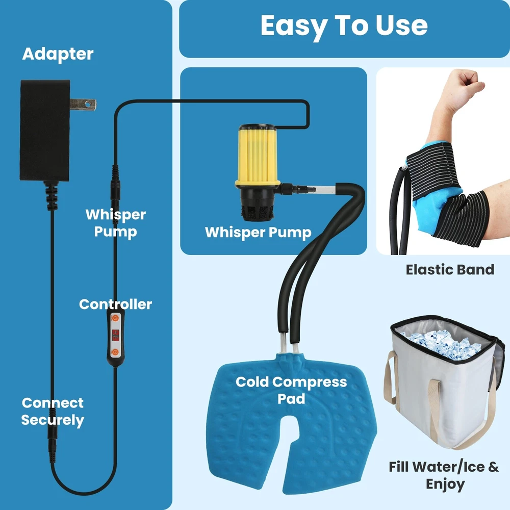 Free Shipping Featured Item Product Detail Image Gallery Product Description Overview: Recover faster and more comfortably with this portable cold therapy machine! Designed for post-surgery recovery, sports injuries, and general , this machine provides continuous cold therapy to reduce swelling and pain. With a large 19QT water tank, 3 flow levels, and 6 timer settings, it offers customized treatment options. The 4-layer solid construction makes itself stable and collapse-resistant. The long double-layered insulation tube ensure efficient cooling without leaks. Ideal for use on knees, shoulders, wrists, calves, ankles, and elbows. A thoughtful gift for athletes, patients, and anyone in need of cold therapy. Features: 19QT Large Water Tank with Solid Construction: The cold therapy machine features an upgraded 19QT generous water tank with 4-layer premium materials from outer to inner(Oxford Fabric,EPE Foam,Insulation Aluminum Foil,and Waterproof Thickened TPU),stable and collapse-resistant. The machine delivers 40% longer continuous cooling time for post-surgery recovery,sports injuries,and general . 3 Flow Levels & 6 Timer Settings: Our programmable ice therapy machine offers 3 adjustable flow speeds(L1-L3) for targeted cooling intensity and 6 smart timing settings for you to personalize your cold therapy treatment. Leak-Resistant & Lengthened Design: The ice pack machine features thickened TPU lining and 74.80in long double-layered insulation tube,ensuring efficient cooling without any leaks. 3 Elastic Bands for Whole Body Use: The cryotherapy freeze kit includes 3 elastic bands of different lengths(15in,27.56in,45.28in) to securely attach the cold compress pad to various body parts,including knees,shoulders,wrists,calves,ankles,and elbows. Whisper-Quiet Pump & Ideal Gift: Equipped with a quiet water pump,the cold rush therapy machine system operates smoothly without disturbing your rest. Featuring 2 carrying handles and lightweight design make it portable for anyone. Just pack the accessories into the tank and zip up,you can enjoy your cold therapy anytime anywhere. An ideal gift for athletes,patients,and anyone in need of cold therapy. Friendly Reminder: 1. Ice compress should be no more than 20 minutes. Wait at least 4 hours before reapplying. 2. Do not use water above 42℃/108℉ for hot compress to avoid burns. 3. Stop treatment if skin turns purple or if you feel numb or painful. 4. Add ice to the tank,filling about 1/3 of it. 5. Add water to the tank until the water level is about 3inches from the top edge. 6. The interface between the cold compress pad and the insulation tube cannot be folded,otherwise the water supply will be blocked. Specifications: Brand: iMounTEK Product Type: Cold Therapy Machine Color: Grey Material(Outer to Inner): Oxford Fabric+EPE Foam+Insulation Aluminum Foil+ Waterproof Thickened TPU Input: 100-240V 50/60HZ Water Tank Bag Capacity: 18L/19Quart Water Flow Speed Levels(Low to High): L1, L2, L3 6 Timer Settings: 10/20/30/40/50/60Min(Default 30Mins) Cooling Temperature: 10℃/50℉ Tank Size: 28x30x20cm/11.02x11.81x7.87in Tank Weight: 292g/0.64lbs Cold Compress Pad size: 31x29cm/12.20x11.42in Insulation Tube Length: 190cm/74.80in Water Pump: Cable Length: 116cm/45.67in; Pump Weight: 197g/0.43lbs Adapter Cable Length: 128cm/50.39in Controller Cable length: 191cm/75.20in Per Elastic Band Width: 10.5cm/4.13in Elastic Bands Length(3Pcs): 38cm/15in, 70cm/27.56in, 115cm/45.28in Package Size: 28.2x20x29.5cm/11.10x7.87x11.61in Package Weight: 1305g/2.88 lbs Package Contents: 1x Tank 1x Insulation Tube with Cold Compress Pad 1x Water Pump Cable 1x Controller Cable 1x Adapter Cable 3 x Elastic Bands(Different Lengths) 1 x User Manual Terms & Conditions Thank you for your business !