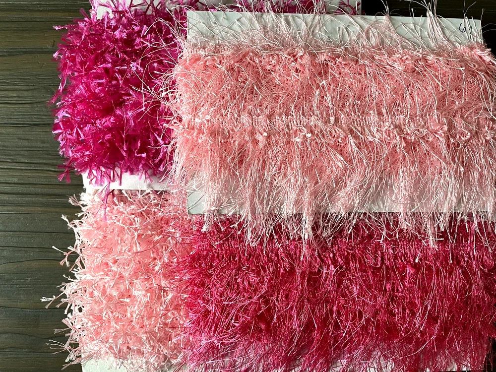 Add some character to your sewing or crafting project with this 19 yard lot of trim: Fiber Fringe - 2 inch - 4 yards FIber Fringe - 2 inch - 4 yards Eyelash - 3 inch - 6 yards Eyelash - 3 inch - 5 yards This trim is perfect for adding a decorative touch to clothing, home decor, doll crafts, scrapbooking, or any other project that needs a bit of flair. The unique design and variety of styles is sure to catch the eye and add a touch of whimsy to your work. Ships on the bolts as shown from the USA to the USA for FREE! Business closing sale - Check our other listings!