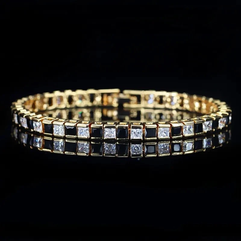 Brand: horizonstarsilverjewels Setting Style: Bar Number of Diamonds: Multi Seller Notes: “"100% Buyer Satisfaction." "Follow us for fresh, new designs every time!"” Main Stone Treatment: Not Enhanced Theme: Angels, Art, Awareness, Beach, Beauty, Biker, Fairytale & Fantasy, Family & Friends, Fashion & Costumes, Halloween, Hip Hop, Love, Luck, Music & Dance, Nature, Sea Life, Sports, Travel & Places, Vacation Personalize: Yes Sizable: Yes Colored Diamond Intensity: Fancy Country of Origin: United States Customized: Yes Base Metal: Fine Silver Diamond Color Grade: D Total Carat Weight: 19 Ctw Personalization Instructions: If you would like to change the size of your bracelet, please let us know within 24 hours. After this time, we will proceed with shipping a default US size 7.5?. Shape: Princess Metal: Sterling Silver Handmade: Yes Country/Region of Manufacture: United States Item Length: 7.5 in Chain Type: Princess Link Signed: Yes Material: Stone, Metal Occasion: Anniversary, Birthday, Christmas, Engagement, Graduation, Mother's Day, Valentine's Day, Wedding Type: Bracelet Style: Tennis Secondary Stone: Diamond Main Stone Color: Black & White Gemstone Clarity Grade: Eye Clean Color: Yellow Features: Nickel-Free Seller Warranty: Yes Main Stone Creation: Lab-Created Number of Gemstones: Multi Wholesale: Yes Diamond Clarity Grade: Very, Very Slightly Included (VVS1) Metal Purity: 925 Charm Type: Traditional Closure: Box Cut Grade: Excellent Main Stone: Diamond Main Stone Shape: Princess