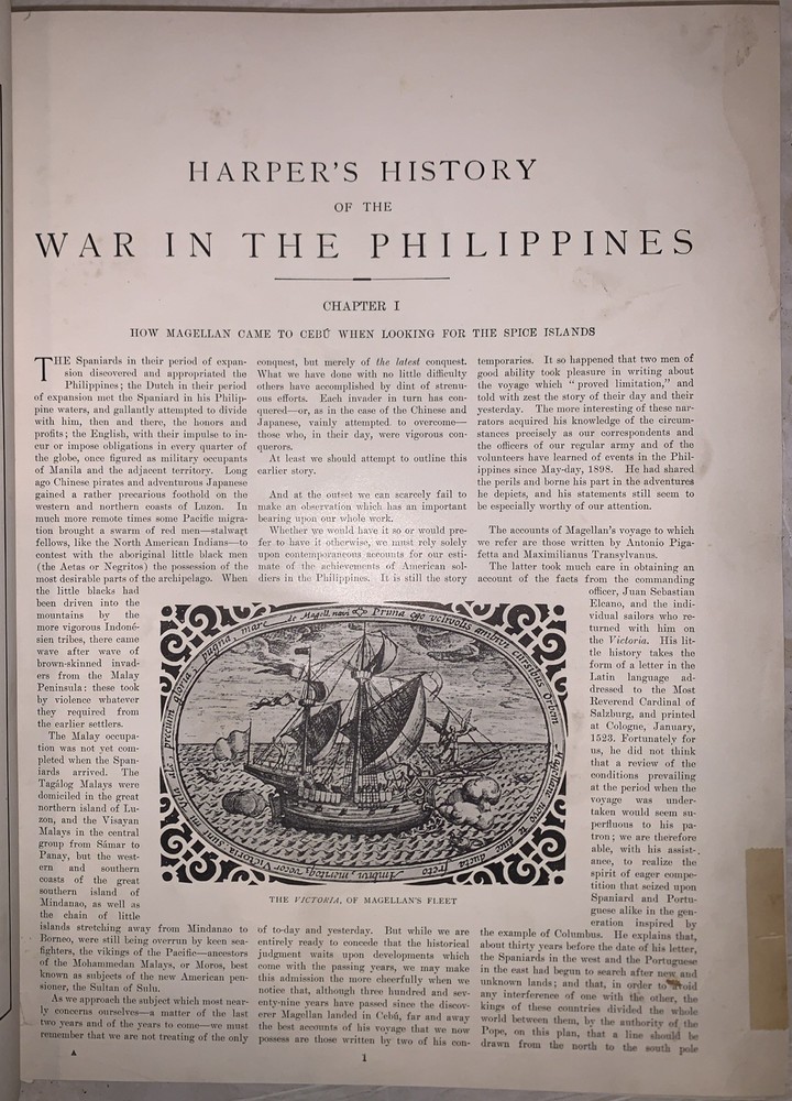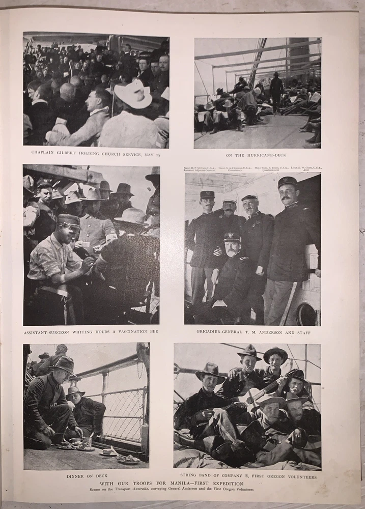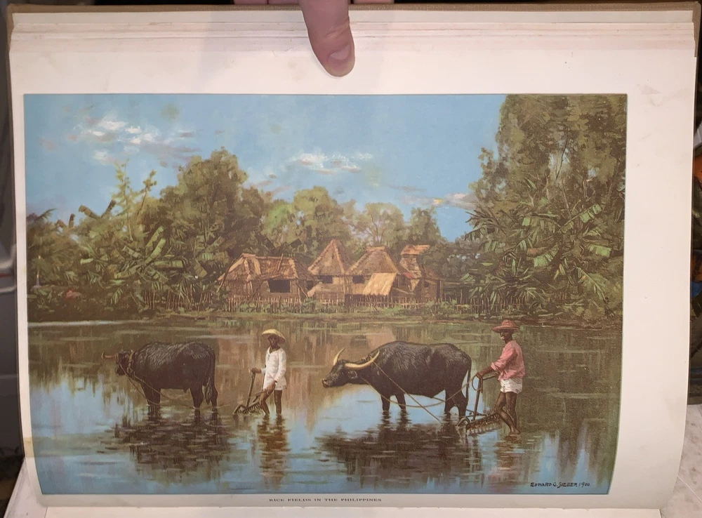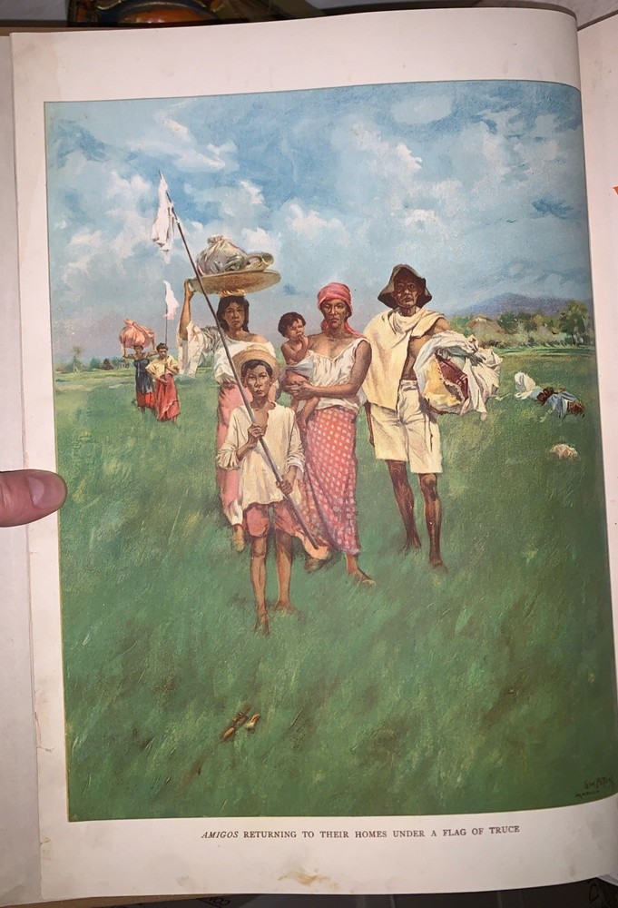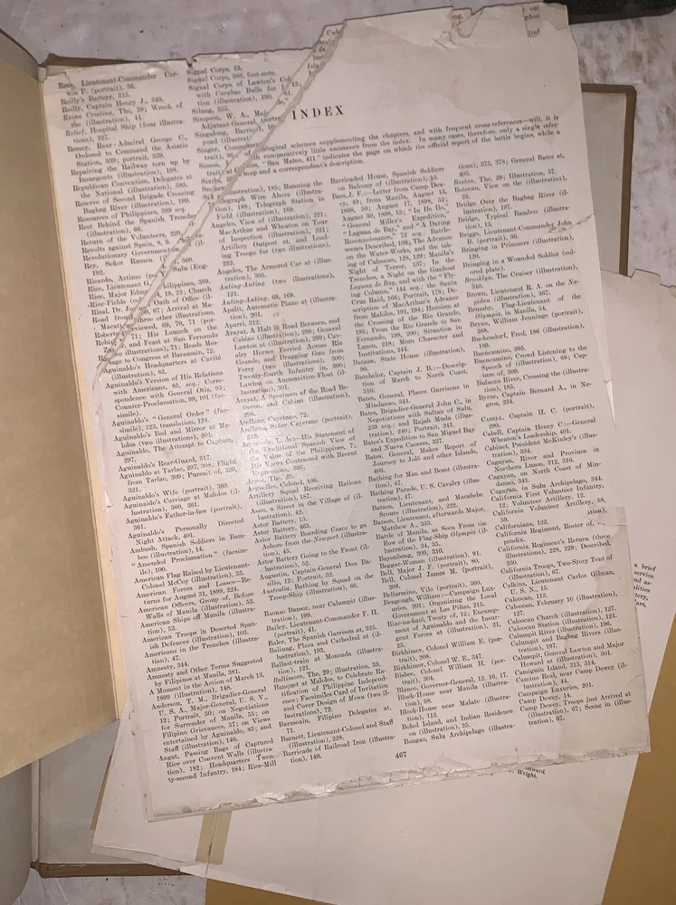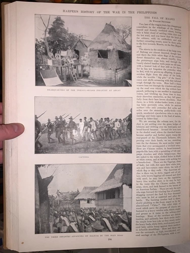 Harper's History of the War in the Philippines Edited by Marrion Wilcox, B.A., LL.B. Illustrated New York and London: Harper & Brothers 1900 First Edition Large folio, 464 pages, professionally rebound in full tan cloth covered boards with gilt lettered spine label. Illustrated throughout with full-page color plates, also in black and white. It appears that the last few pages are detached, with large losses and laid in at the rear, may lack a few leaves, numerous tears and tape repairs, some discoloration, else in good condition. 15" x 12" x 2". This auction has no reserve, an opening bid of only $0.01, and free shipping. If you have any questions, feel free to ask, and don't forget to check out my other listings.