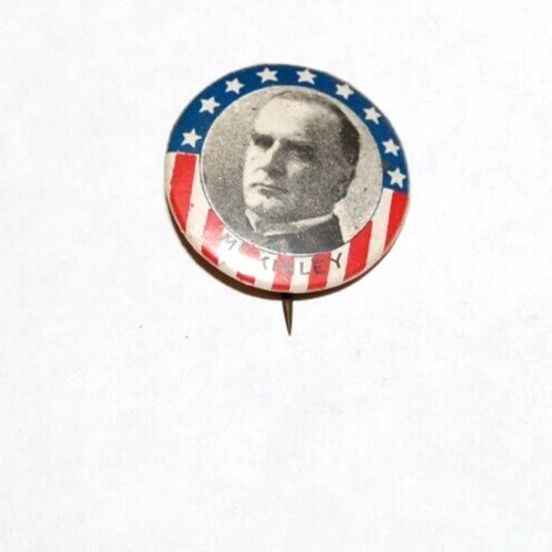 A 1900 William McKinley Presidential Campaign Button Pinback button promoting William McKinley for president, 1900. The Whitehead and Hoag Co., Newark, New Jersey. No doubt the gold background coloring was meant to refer to McKinley's gold policy. We offer this original button from the 1900 campaign picturing McKinley. The incumbent McKinley was a strong candidate for reelection in 1900. A successful war with Spain during his first term expelled the empire of Isabella and Ferdinand from the New World, extending U.S. territory and influence and enriching its large corporations. After the inflationary 1890s, the economy was on the rebound, and popular feeling was behind the administration and its mantra, the gold standard. McKinley handily won the election, defeating Bryan a second time. His second term, however, would be cut short by an assassin. Item Details: This button is in MINT condition and will be a fantastic addition to upgrade any collection large or small. This button measures 7/8 inches in diameter. Please disregard any glares or shadows. All of our pinbacks and buttons are authentic and backed 100% by the PoliticalPins4YOU Guarantee. Buy with Confidence -- see our feedback!! Please feel free to browse our store for more great deals on your favorite presidential campaign pinbacks ranging from Theodore Roosevelt to today. Visit Our eBay Store: Political Pins 4 You Thank you so much for looking. God Bless America!! Sign up for our email newsletters by adding our eBay Store to your Favorites. Be sure to add us to your favorites list !