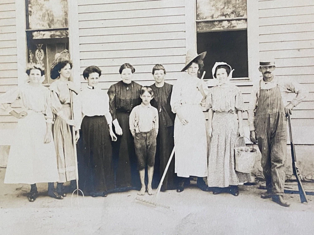 Large Family Posing in front of home Vintage real photo postcard 1910s Rural Americana Size is 3.5" x 5.5" inches – unposted ________________________ Please wait for combined invoice before paying Visit our store for 2,000+ items – Thank You!