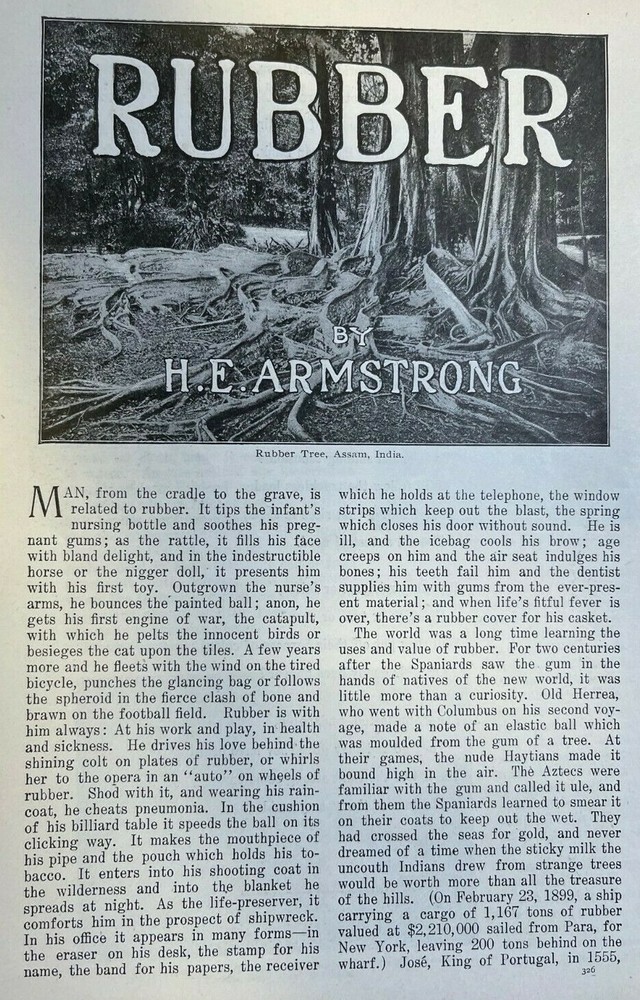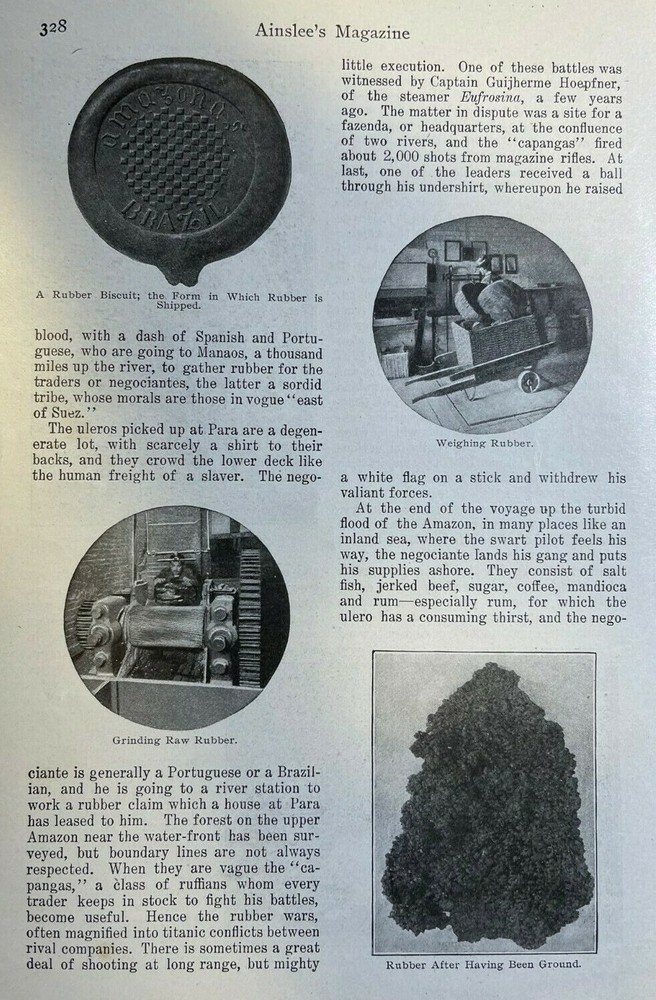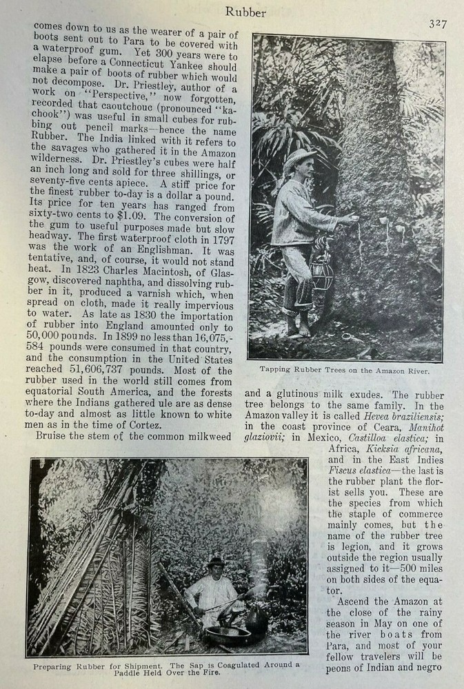 This vintage 1901 magazine article on rubber trees and rubber making in the Amazon River is a fascinating piece of history! The 9 pages and 18 illustrations are beautifully preserved, with just the right amount of charming age-toning and wear you'd expect from a century-old print. The detailed illustrations capture the rubber production process in a way that feels both educational and artistic. Perfect for collectors of vintage paper or anyone interested in industrial history—it’s a unique conversation starter with great visual appeal. The slight browning and corner wear only add to its authentic character. A wonderful find!
