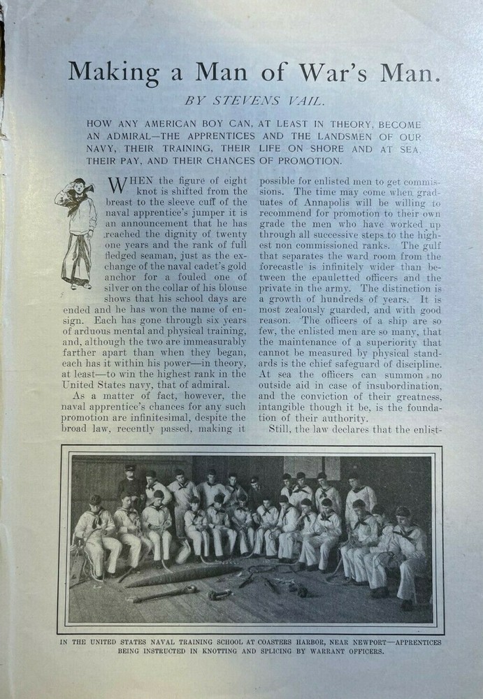 Vintage illustration removed from a magazine published in 1901. Contains 8 pages including 10 illustrations. Page size approximately 6 inches x 9 inches. Would be great for addition to any vintage print collection. SKU # 16338 Nice article overall. Has some browning, age toning, and dinged corners, but overall very nice for a 100-year-old magazine article.