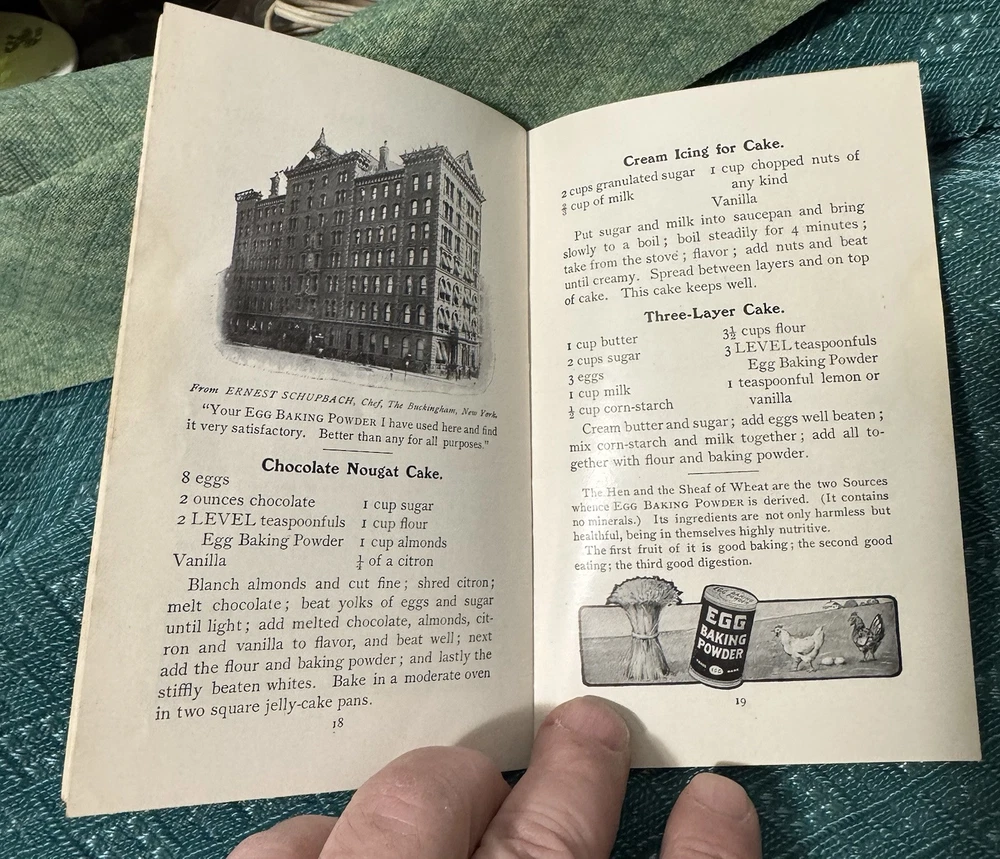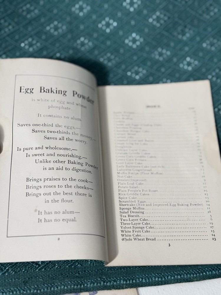 Fantastic recipe booklet put out by the Egg Baking Power Co New York. This recipe booklet is 31 pages with 10 famous hotel illustrations and their recipes. . Beautiful condition with no stains or tears. Booklet is 4” by 6 1/2”. It doesn’t get any better than this!