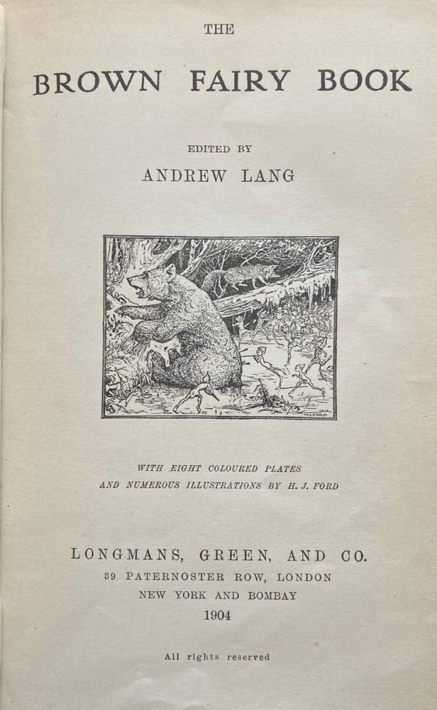 Express Shipping Worldwide is Free The Brown Fairy Book By Andrew Lang Illustrated by Illustrated by Henry Justice Ford Published by Longmans, Green & Co., London, 1904 First Edition With seven (the plate opposite page 128 is not present) full page colour plates, 22 full page black and white plates, and numerous in text illustrations. Henry Justice Ford , a noted English illustrator who is best known for his beautiful illustrations for Lang's works. The frontispiece tissue guard is intact. The Brown Fairy Book contains stories from the American Indians, Australian Bushmen and African Sothos, and from Persia, Lapland, Brazil, and India. The stories are: "What the Rose did to the Cypress" "Ball-Carrier and the Bad One" "How Ball-Carrier finished his Task" "The Bunyip" "Father Grumbler" "The Story of the Yara" "The Cunning Hare" "The Turtle and his Bride" "How Geirald the Coward was Punished" "Habogi" "How the Little Brother set Free his Big Brothers" "The Sacred Milk of Koumongoe" "The Wicked Wolverine" "The Husband of the Rat's Daughter" "The Mermaid and the Boy" "Pivi and Kabo" "The Elf Maiden" "How Some Wild Animals became Tame Ones" "Fortune and the Wood-Cutter" "The Enchanted Head" "The Sister of the Sun" "The Prince and the Three Fates" "The Fox and the Lapp" "Kisa the Cat" "The Lion and the Cat" "Which was the Foolishest?" "Asmund and Signy" "Rübezahl" "Story of the King who would be Stronger than Fate" "Story of Wali Dad the Simple-hearted" "Tale of a Tortoise and of a Mischievous Monkey" "The Knights of the Fish" In reddish/brown pictorial hardcover with decorations in gilt to the front cover and to the spine, in 350 pages, with all page edges gilt. There is light shelfwear. There is no foxing. There is a small neat previous owner's name to the half-title page. There is a slight give to the front hinge. There are few spots where the binding is visible in the gutter but has no impact on the integrity of the volume. Further condition details: - Page 49 - there a couple of marks including to the in-text illustration. - Page 58/59 and page 204/205 - there two narrow lines of rust marks occupying about half of the vertical blank margin. - Page 145 - right blank margin has a small light smudge mark. - Page 204/205 - there are a few light marks to the top centre at the gutter in the blank margin. - Page 216 - there is a small mark the top of the page. - Page 256/257, 258/259, 260/261, 268/269 - there are a few very small round dot like marks in the gutter blank margin. -Page 304 - a short closed tear to the bottom of the right blank margin. There are no loose pages. The binding and block are fine. Measures 12.5cm x 19cm. Express Shipping Worldwide is Free All items are securely and well packed. Thank you for viewing my item.
