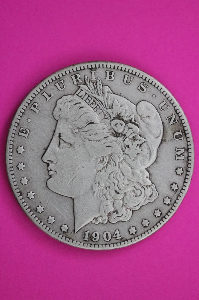 Composition: Silver Total Precious Metal Content: .7734 oz Certification: Uncertified Certification Number: Not Certified Precious Metal Content per Unit: .7734 oz Year: 1904 Fineness: 0.900 Brand/Mint: US Mint Coin: Morgan Silver Dollar Grade: Ungraded Brand: US Mint Strike Type: Business Country/Region of Manufacture: United States