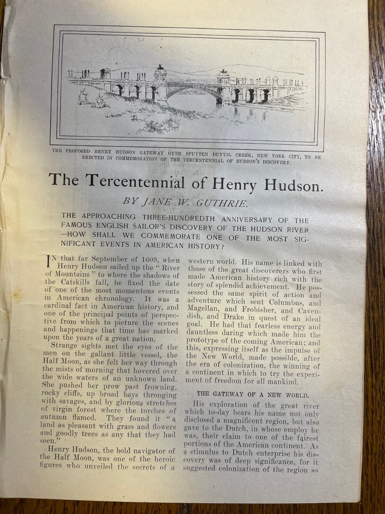 Vintage magazine illustrations removed from a vintage magazine . 1904. Contains 5 pages and 5 illustrations. Page size approximately 6 inches x 9 inches. Would make a great addition to any paper American collection. This is a reading copy. it has water stains, paper wrinkles, and small margin tears. SKU # 18415 Nice article overall. Has some browning, age toning, and dinged corners, but overall very nice for a 100-year-old magazine article. Born around 1565, Henry Hudson grew up in a world obsessed with finding new trade routes, particularly the elusive Northwest Passage—a supposed shortcut from Europe to Asia through the Arctic. It was the ultimate prize for any explorer, and Hudson was determined to find it or die trying. In 1607, he set sail on his first big expedition, aiming to find a northern passage over the top of the world. Spoiler alert: he didn’t find it. Instead, he ran into a lot of ice. Undeterred, Hudson tried again the next year. And guess what? More ice. But Hudson wasn’t about to let a little frostbite stop him. By 1609, Hudson was working for the Dutch East India Company and changed tactics. Instead of going north, he sailed west across the Atlantic, hoping to find a passage through North America. This time, he stumbled upon a big river. Not just any river, but the mighty one that would later be named the Hudson River in his honor. Hudson explored the river all the way to what is now Albany, New York, paving the way for Dutch colonization in the region. In 1610, he embarked on his final and most fateful voyage, this time under the English flag. He ventured into what we now know as Hudson Bay, thinking he might have finally found the long-sought passage. But winter was coming, and it wasn’t just ice that threatened Hudson this time—it was his own crew. Trapped in the bay by the freezing weather, tensions ran high. The crew, fed up with the harsh conditions and Hudson’s relentless pursuit of the nonexistent passage, mutinied. In a tragic turn of events, Hudson, his teenage son, and a handful of loyal crew members were set adrift in a small boat, never to be seen again. The mutineers made it back to England, but Hudson’s fate remains one of history’s great mysteries. Despite his tragic end, Henry Hudson’s name lives on. He may not have found the Northwest Passage, but he opened unknown parts of the world to exploration and helped set the stage for European colonization in North America. So, the next time you find yourself crossing the Hudson River or hearing about Hudson Bay, remember the man who got lost trying to find a shortcut but ended up making his mark on history, anyway.