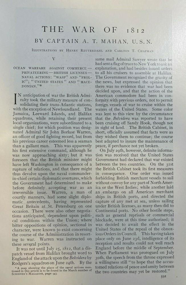 1904 War of 1812 Northern Frontier Captain Alfred T. Mahan illustrated