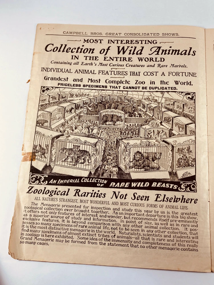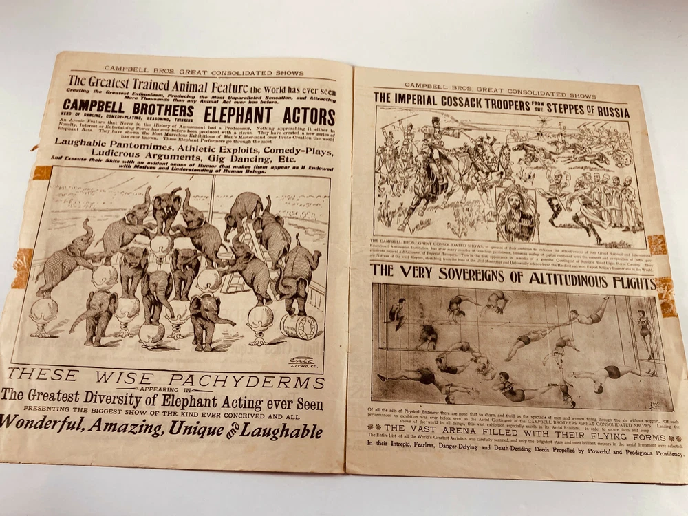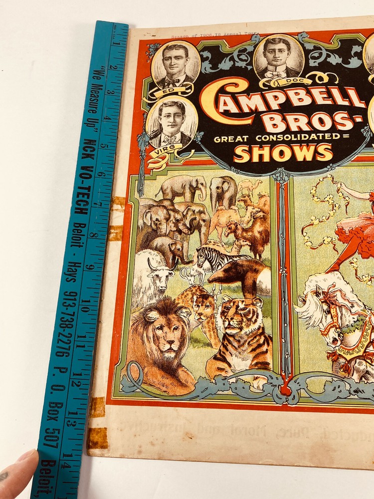 For sale is this WONDERFUL item from a life-long collection of vintage Carnival and Circus posters and large format programs from the early 1900's through the 1950s and 60s. We take great pains in having bright, clear photos. They are a large part of the description. Make sure you look closely at the photos to determine condition. All hage age, wear, some have rips, tears, folds, creases, age. Many of these items are RARE and beautiful. We've recently purchased AMAZING circus and carnival items from the life long collection of Gary Bart. Very rare items! See pics. Ask questions. STORE POLICIES Please look closely at the item photos. Our photos are the best indication of condition. Please ask questions. All of our items are sold AS-IS. We don't break our lots, with peace and love. No returns. All of our items are listed as found! All offers considered, first reasonable offer accepted! All of our shipping charges include full insurance and tracking. We reserve the right to adjust the mode of shipping. Canadian customers should contact us for exact charges . We take pride in our positive feedback! Please contact us with any issues. We ship all items within 3 business days. Larger items may take longer.