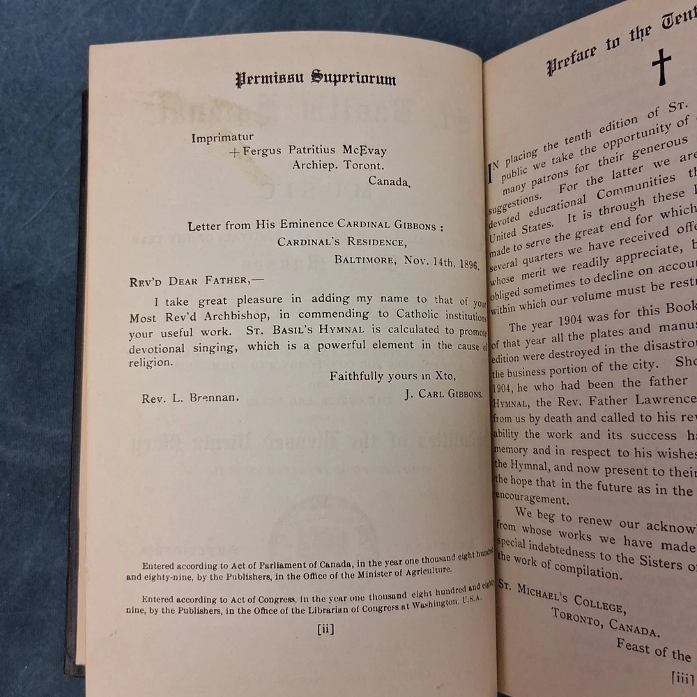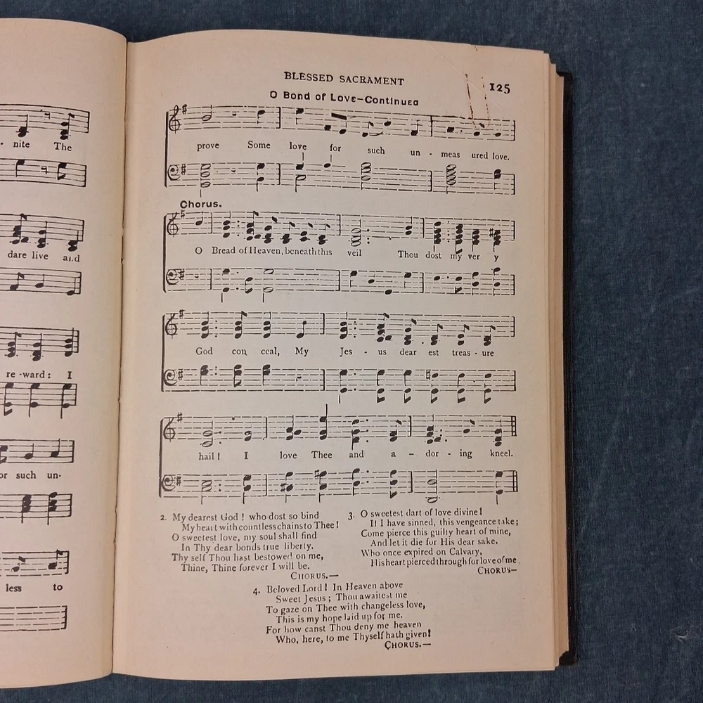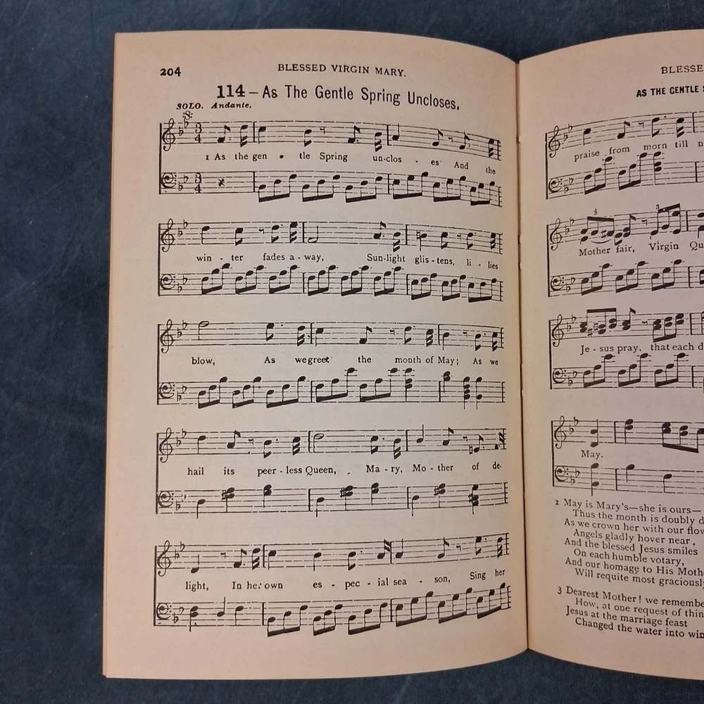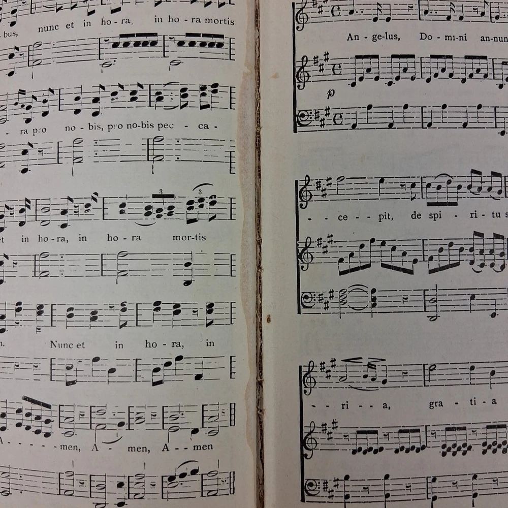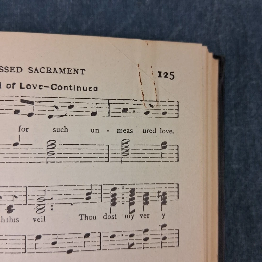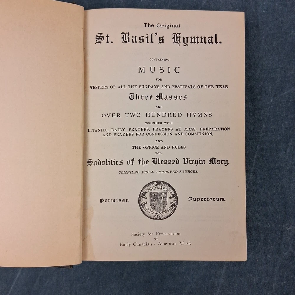 The Original St. Basil’s Hymnal (1906) – Compiled by the Society for the Preservation of Early Canadian-American Music Condition Note: Very good antique hardcover hymnal. Music notation remains dark and easy to read. Includes solo, duet, and four-part hymns. Binding is secure, boards and spine are intact. A 4×6 white label covers a possible inked name on the front flyleaf. Pages are clean with normal age toning. Please see photos and full description below for important condition details. We ship daily M-F. Publication Details: Compiled by: Society for the Preservation of Early Canadian-American Music Format: Hardcover Year: 1906 Genre: Antique / Collectible / Church Music Subject: Hymnal / Catholic Liturgical Music Era: Early 20th Century Summary: This rare hymnal contains music for Vespers of all Sundays and Festivals of the year, three Masses, over two hundred hymns, litanies, daily prayers, prayers at Mass, preparation and prayers for confession and communion, and the office and rules for Sodalities of the Blessed Virgin Mary. Many hymns include solo and duet vocal lines, while others feature full four-part harmony. The music notation remains bold and legible, making it both a beautiful collectible and a functional resource for historic liturgical music performance. Perfect For: • Antique and rare book collectors • Church music directors or historians • Liturgical music enthusiasts • Collectors of Catholic Americana • Libraries or archives preserving early 20th-century church music Ships Promptly: Your book will be carefully packaged to protect the binding and pages. Orders ship quickly Monday through Friday. About Us: 🦎 Rusty & Lawana – The Horned Toad Nation – America’s Heartland. Trusted sellers of premium books, collectibles, and more. We carefully inspect every item and add new finds daily—click the ❤️ to save us as a seller and shop with confidence!