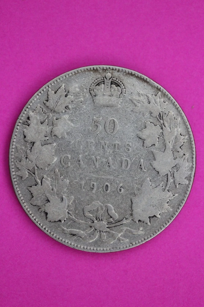 Fineness: 0.925 Coin: Silver Half Dollar Composition: Silver Year: 1906 Grade: Ungraded Strike Type: Business Precious Metal Content per Unit: .3456oz Brand/Mint: Royal Canadian Mint Certification: Uncertified Certification Number: na Country/Region of Manufacture: Canada