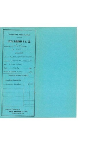 This 1907 inter-company accounting voucher documents a financial transaction between the Little Kanawha Transportation Company and the Little Kanawha Railroad Company, providing insight into early twentieth-century corporate finance and transportation networks in West Virginia. Dated May 8, 1907, the accounts receivable voucher from the railroad company records a $10.00 payment from the transportation company representing a proportion of the Salary of Agent at Owensport, West Virginia for the month of April. The document is marked with Auditor's No. 473 and stipulates that remittance be directed to the railroad's treasurer in Parkersburg, Wood County. The transportation company's address is listed as Owensport in Wirt County, situating the transaction within the Little Kanawha River valley's regional economy. The accompanying bill of lading or invoice from the Little Kanawha Transportation Company to the railroad company contains authorization lines for Audited, Approved, and Approved for Collection, indicating the bureaucratic procedures governing inter-corporate financial settlements of the time. The presence of T. J. Stafford as treasurer for the transportation company and the formal receipt of payment signed by the railroad's treasurer demonstrate the administrative structure used to coordinate river and rail transport operations. This financial instrument, incorporating both pre-printed lithography and handwritten accounting entries, reflects corporate record-keeping practices and the economic relationships between transportation enterprises in Appalachia during the Progressive Era.