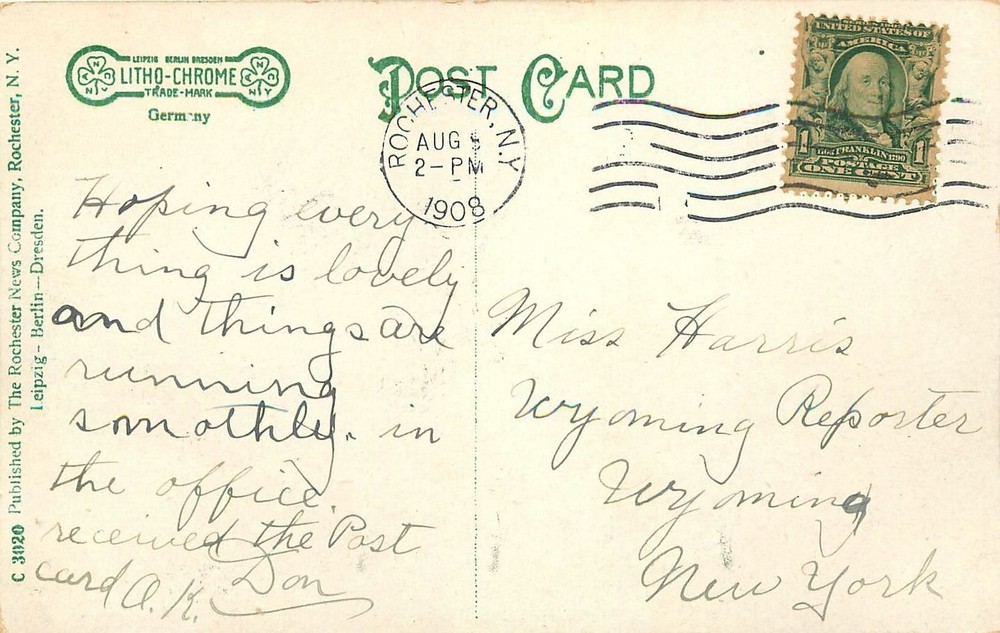 A Vintage postcard as described in title, additional info is below--rounded corners, surface damage Publisher-photographer--Artist---Rochester News CO card #----- C 3020
