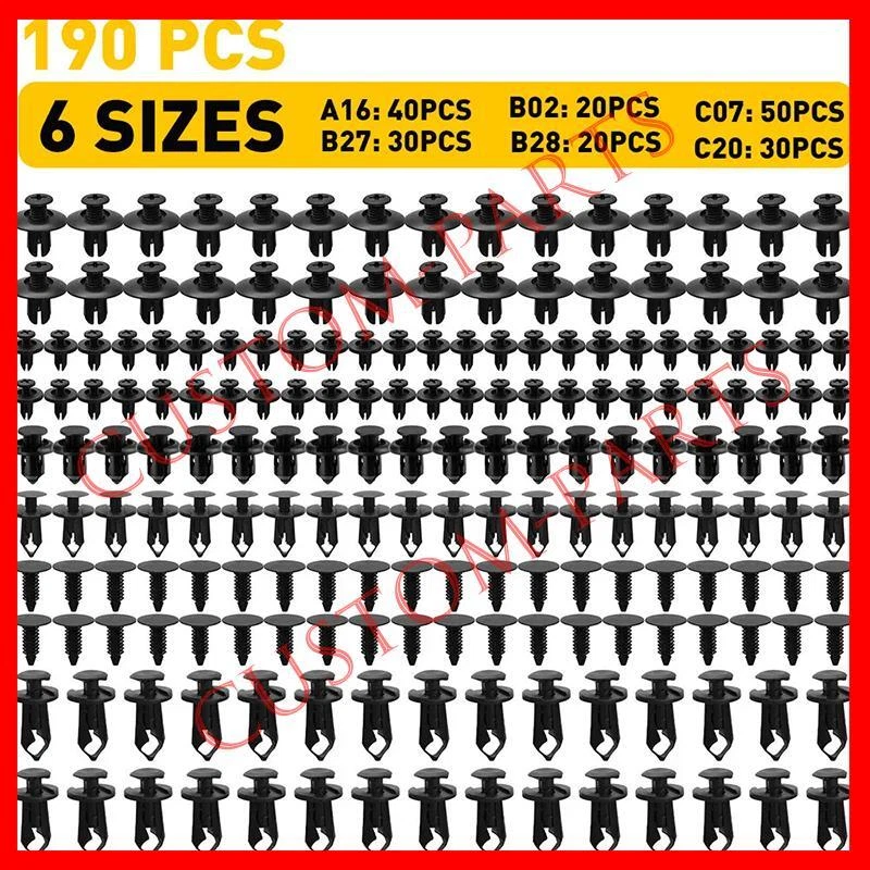 SAFE & SECURE SHOPPING 100% SATISFACTION GUARANTEED FAST SHIPPING You may also like You may also like NEW Land Rover Range Rover RR Sport LR4 3.0L 5.0L ENGINE OIL FILTER LR011279 US 15.99 USD Free shipping Body Bolts & U-nut Clips - M6 Engine Under Cover Splash Shield Guard For Hyundai 7.99 USD Free shipping NEW 2008-23 Subaru Forester Fog Light Driving Lamp Relay Impreza WRX 25230AA190 10.99 USD Free shipping NEW Thermostat Outlet Hose Connector (UPGRADE BRASS) Land Range Rover 5.0L 3.0L 5.99 USD Free shipping 2x Sun Visor Shade Holder Clip Retainer Beige for Honda Civic CR-V 88217S04003ZA 5.99 USD Free shipping 2Pcs/Pack Lock On Air Chuck 1/4NPT Closed Flow Brass Tire Air Chuck For Inflator 11.99 USD Free shipping 190X Car Clips for Hole Plastic Rivets Retainer Fender Push Pin Fastener Bumper Product Description Don't choose " NO LONGER NEED ITEM or ORDERED BY MISTAKE " , when you want to return the item. We will certainly deal with your any questions ASAP, pls don't open any CASE. Looking forward to your good store reviews Specifications: Material: ABS Placement on vehicle: Various fasteners to meet the needs of different parts of the car. Used widely for car fender, bumper, door or other car surface. Universal for: Most of car models such as for Volvo, BMW, GM, Ford, Toyota, Honda, Nissan, Mazda, Chrysler, Volkswagen, Mercedes Benz, Audi, etc. Features: *Wear and corrosion resistance The retainer clip with wear and corrosion resistance is not easy to break or crack in use. *ABS material Made of superior ABS material to ensure its long service life and durability. *Simple installation Simple installation with direct replacement,other modifications are not required. *Stable performance The retainer clip with stable performance provides a better shopping experience for our customers. Packaging include: A16: 40PCS C07: 50PCS C20: 30PCS B28: 20PCS B27: 30PCS B02: 20PCS STORE INTRODUCTION DELIVERY AND RETURN CONTACT US STORE INTRODUCTION Serving US market since 2018. Based in California offering the best quality and lowest price items, offer various types of auto parts . We can customize or wholesale all the items according to customers' requirements. And we would appreciate it if you could give us your favorable comments. If you have any questions at any time, you can contact us any time. DELIVERY AND RETURN We will dispatch your purchase within 3 business day after payment clearance. Shipping Time is around 3-5 business day Pls contact us first when you want to return the item, and pls choose " NO LONGER NEED ITEM or ORDERED BY MISTAKE " , DON'T open any case. otherwise any direct return of purchased items will not be processed. We will closely examine the condition of the returned items and will not issue any refund/exchange before we make sure the items are in their original neat conditions. CONTACT US Before leaving us neutral or negative feedback, please contact us first. We will do everything we can to give you a satisfying solution. Please don't open case via eBay. Please don't open any return request before contact us. We do our best to resolve any issue. Leaving negative feedback and low ratings doesn't get things solved. So please talk with us and we will not let you down. Copyright © 2022 Tongtool