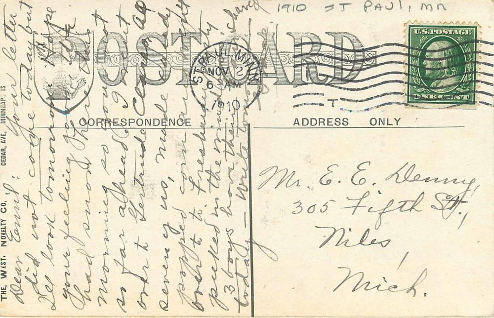 A Vintage postcard as described in title, additional info is below--rounded corners, surface damage Publisher-photographer--Artist---West Novelty CO card #----- no