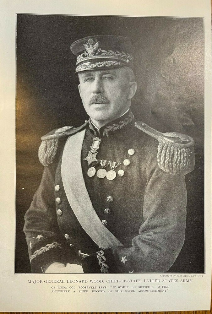 1910 Antique Magazine Illustration – Vintage Print – Historical Artwork Step back in time with this authentic 1910 vintage magazine illustration , carefully preserved from a historic publication. This original antique print features exquisite detail and craftsmanship, making it an ideal addition for collectors, history buffs, and art lovers alike. Item Details: Date: 1910 Original vintage illustration (single page) Page size: Approx. 6” x 9” Condition: Well-preserved for its age, with expected age toning, light browning, and minor corner wear. Perfect For: Vintage ephemera & paper collectors Framing & home decor – add antique charm to any space Scrapbooking & journaling – unique historical piece Genealogy & historical research SKU # 32488 A genuine piece of history, ready for display or creative projects. Ships with care and protection. Leonard Wood was a soldier, doctor, and leader. He played an important role in the Spanish-American War and helped shape the future of the U.S. Army. Wood was born in 1860 in New Hampshire. He studied medicine and became a doctor. In 1885, he joined the U.S. Army as a surgeon. Even though he was a doctor, he also trained as a soldier and became a strong leader. When the Spanish-American War broke out in 1898, Wood was given command of the 1st U.S. Volunteer Cavalry. This unit became famous as the “Rough Riders.” Alongside Theodore Roosevelt, Wood trained and led this group of cowboys, athletes, and soldiers. He taught them discipline and prepared them for battle. The Rough Riders fought in Cuba, where Spain controlled the island. Wood led his men in several battles, including the famous Battle of Las Guasimas. One soldier later said, “General Wood was fearless. He led from the front and never asked a man to do something he wouldn’t do himself.” After this victory, Wood was promoted to brigadier general. He continued to lead U.S. forces in Cuba, helping to defeat the Spanish. The Rough Riders became heroes, and Wood’s leadership was praised across the country. Roosevelt, who fought under Wood’s command, called him “one of the best soldiers I have ever known.” After the war, Wood became the Military Governor of Cuba, working to improve schools, hospitals, and government services. He believed in helping the Cuban people recover from war. His efforts made a lasting impact on the island.