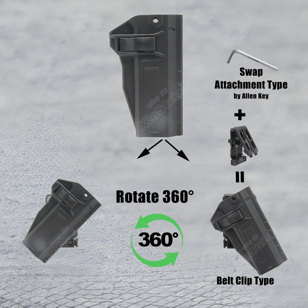 High Quality Military & Police Grade Polymer OWB Holster Specially Designed For Fast Draw During Duty Or Shooting Competition. Outside Waistband Tactical H olster with Belt Clip method for Non-Railed Versions of 1911 Models (For 9mm, .40 only). Holster fit 1911 Holster fit Dan Wesson Dan Wesson Specialist 5" 9mm Luger Dan Wesson Guardian 4.25" 9mm Luger 1911 Holster fit Ed Brown Ed Brown Special Forces 5" 9mm Luger Ed Brown Kobra Carry 4.25" 9mm Luger 1911 Holster fit Kimber Kimber 1911 5" 9mm Luger Kimber 1911 Pro 4" 9mm Luger Kimber Custom II 5" .40 S&W Kimber Pro Carry II 4" .40 S&W 1911 Holst er fit Nighthawk Custom Nighthawk Custom Talon 5" 9mm Luger 1911 Holste r fit Rock Island Armory (Armscor) Rock Island Armory 1911 Ultra FS 5" 9mm Luger Rock Island Armory 1911 FS Tactical 5" .40 S&W 1911 Hols ter fit Springfield Springfield 1911 EMP Champion 4" 9mm Luger Springfield 1911 Loaded 5" 9mm Luger Springfield Armory 1911 Loaded 5" .40 S&W Springfield Armory 1911 Loaded Target 5" .40 S&W 1911 Hols ter f it STI International (Staccato) STI Trojan 5" . 9mm Luger 1911 Hols ter fit Taurus Taurus 1911 5" 9mm Luger Taurus 1911 Commander 4.2" 9mm Luger 1911 Holste r fit Walther Walther Colt 1911 A1 5" .22 LR 1911 Holste r fit Wilson Combat Wilson Combat CQB 5" 9mm Luger ( I t perfect fit the 1911 gun without Optic Mount Mini Sight a bove on the end of the barrel , but also without laser and embedded chassis, and flashlight style ) Ease And Comfort Push side buttons to achieve the fast opening and closing, unique design allows for belt carrying or vest carrying, perfectly used by duty holsters, uniformed law enforcement officers, security personnel, military personnel, private persons, and shooting sports holsters. And it fits closer to the body which can achieve better concealment under clothes. High S afety Secure Level II Retention - Auto-locking system restrain pistol in the holster to ensure ultimate safety, activate the release by pressing the button with the index finger to achieve gun access Adjustable Easily set Holster 360 degrees to your desire position with Allen key, compatible belt width up to 2 inch Tough & Durable Material Custom-molded body made of polymer stronger than leather that will wear out, adapt to every bad environment In the Package: · 1*Holster with Paddle Attachment · 1*Allen Key Shipping: Ships same day or next except Sundays and Holidays ! Free shipping! Ship by USPS First Class Package. 100% MONEY BACK GUARANTEE. Any question please be free to contact with us First .Thanks!