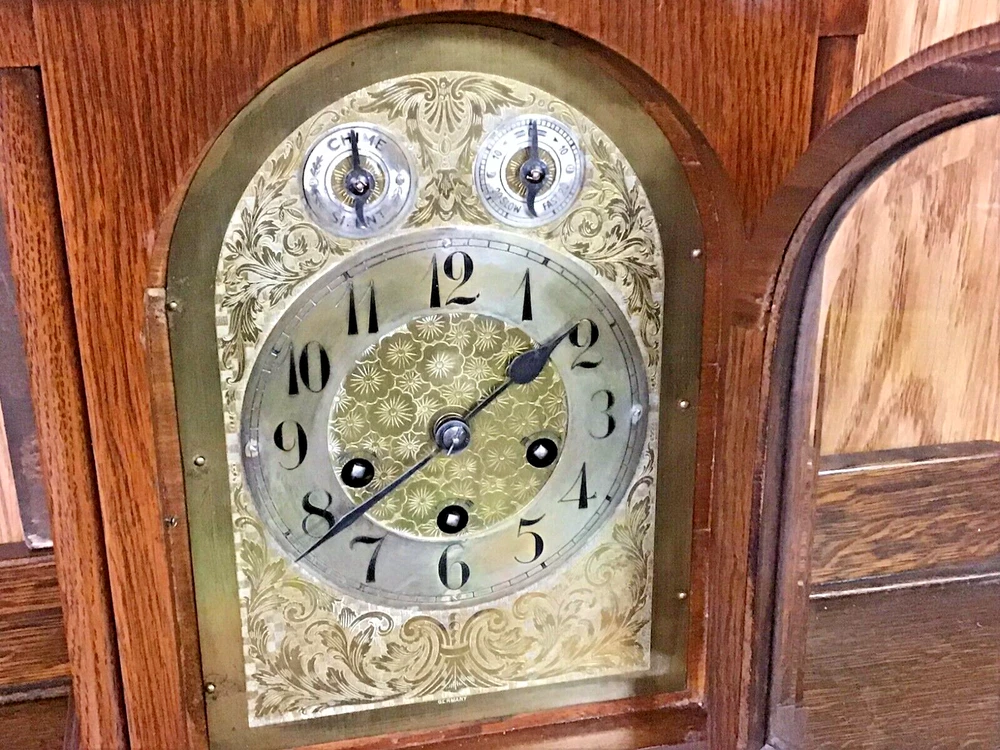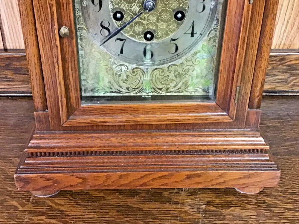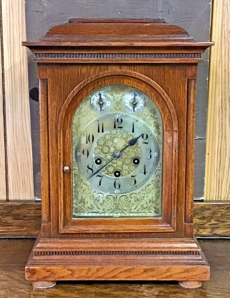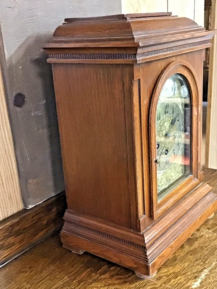 1911 JUNGHANS GERMAN BRACKET CLOCK - WESTMINSTER CHIMES see the photos for best description of condition - from a clock collector, clean and maintained, comes with key and pendulum - Measures 11 1/2" long by 8" wide and stands 17" tall. thanks for viewing my item! I have many more unique and interesting items available and can consolidate shipping for you.