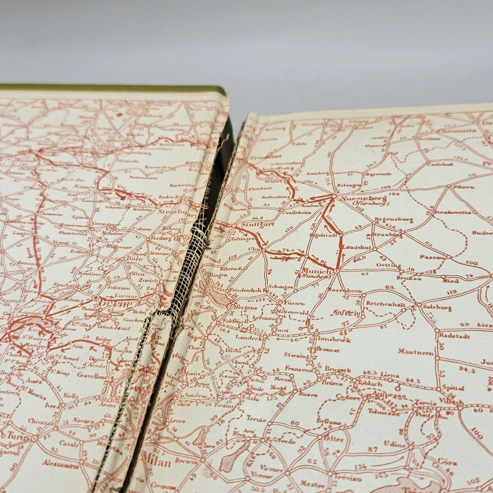 There are some splits in the middle of the book and the back hinge. The book can be handled with some care.