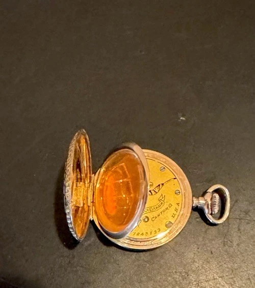 You’re Considering a 1912 HAMPDEN MOLLY STARK Pocket Watch Hunter Case 7 Jewels. Size 0 Works Great. Push lever pops open face. Beautiful. Shipped securely.