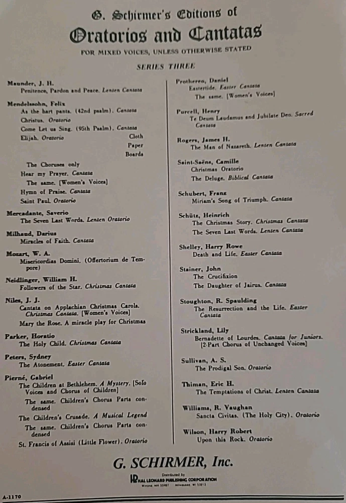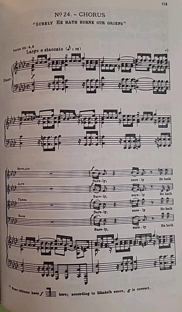 The Messiah – An Oratorio by G. F. Handel Schirmer’s Editions of Oratorios and Cantatas – Series Three Edited by Tertius Noble • Revised by Max Spicker G. Schirmer, Inc. • Copyright 1912 This is a complete vocal score edition of Handel’s Messiah, one of the most performed sacred choral works in history. This edition was specifically prepared for four-part mixed chorus (SATB), soloists, and piano, making it ideal for church choirs, university music departments, and professional choral performance. Unlike common reprints, this is an original early-20th-century Schirmer performance edition still sought after for its clear engraving, traditional voicing, and dependable editorial structure. Condition: • Solid binding All pages present • No missing sections • Light cover wear consistent with age • No stains, no loose pages • Interior clean and very usable This is an evergreen sacred performance score — not a modern reprint. USPS Ground Advantage (boxed, not envelope)
