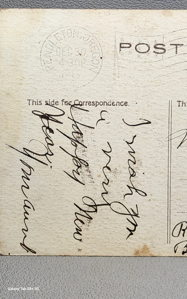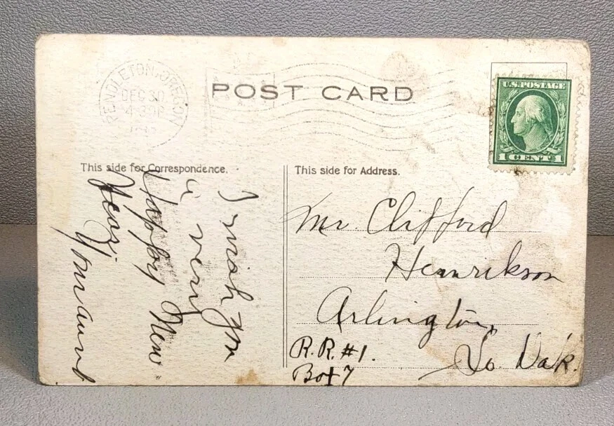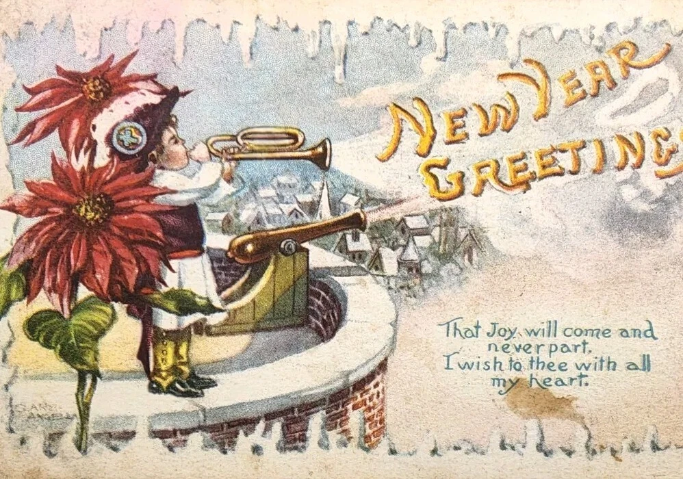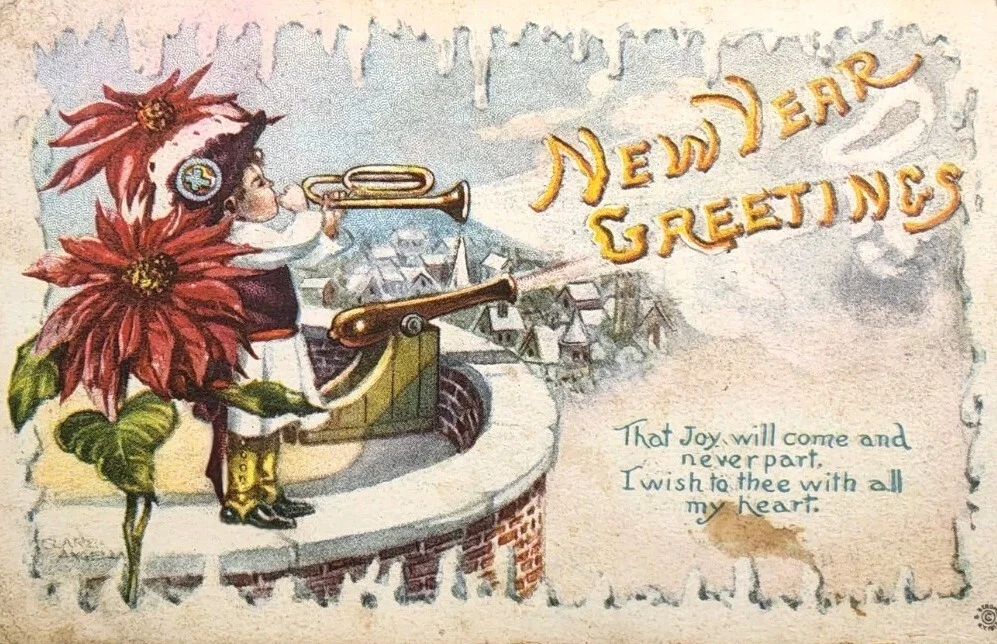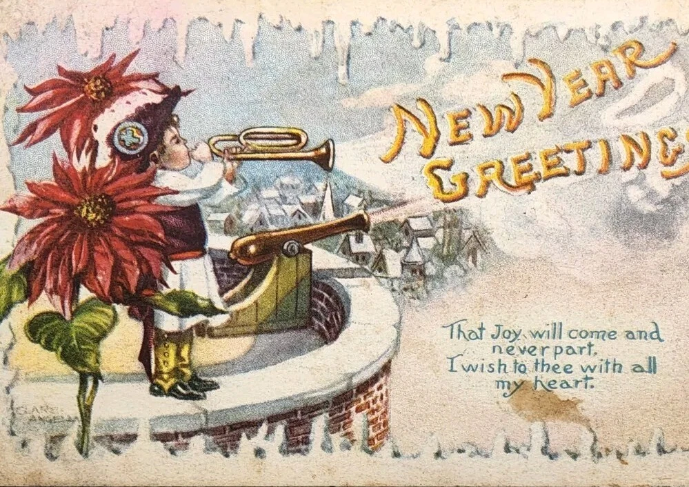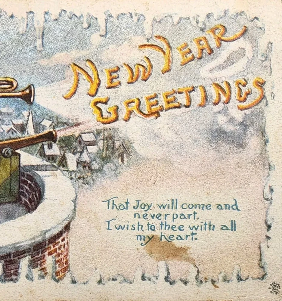 1912 New Years Greetings Picture Postcard ~ New Year Greetings ~ #-5793. Vintage New Year Greetings Picture Postcard is a used standard size postcard. Postcard shows some wear with some spotting. Postcard was copyrighted in 1912 by: S. Bergman of the USA. Postcard is Artist Signed. Nice Used Vintage New Year Greetings Postcard. See pictures for condition information and card details.