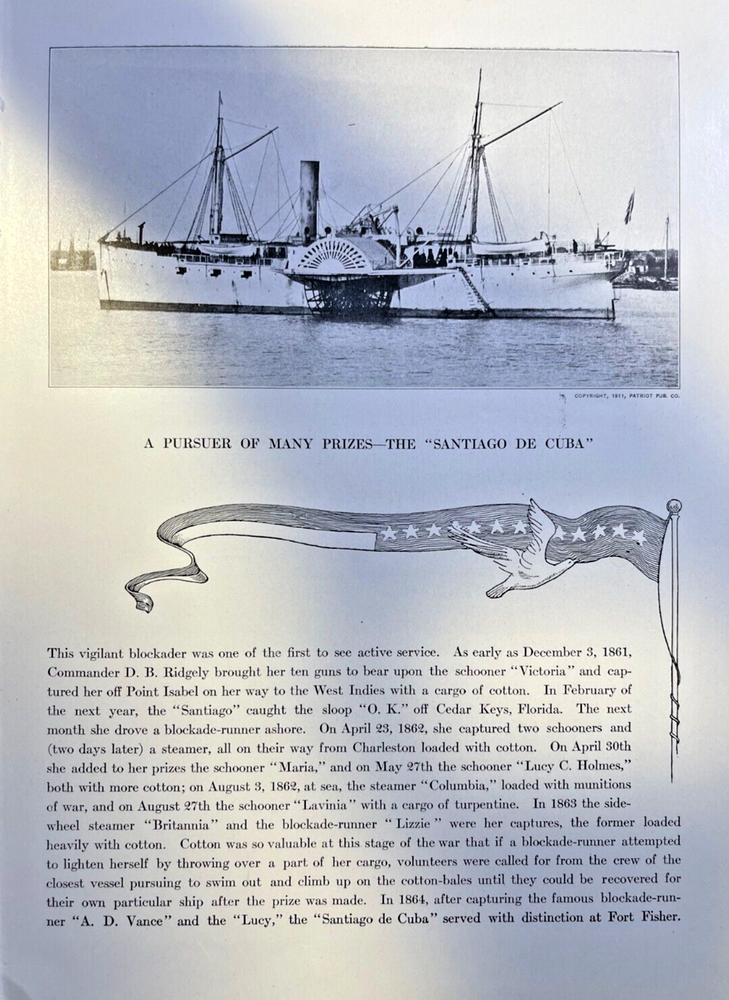1912 Vintage Illustration US Ship Vanderbilt Civil War