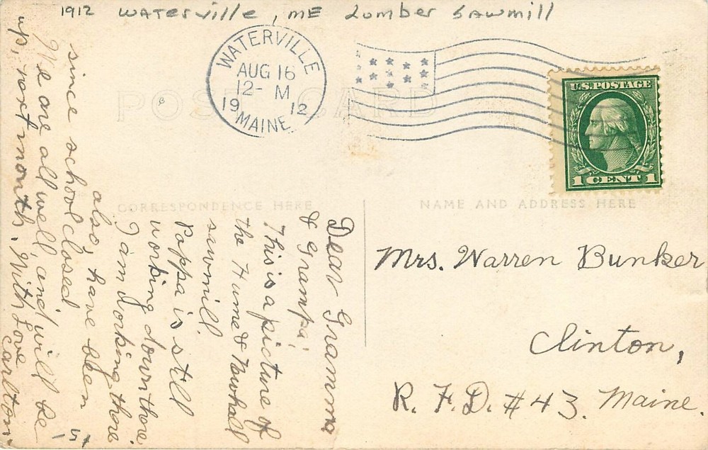 $ 2.641908 Skowhegan Maine Lumber sawmill occupation RPPC Postcard 25-2360
