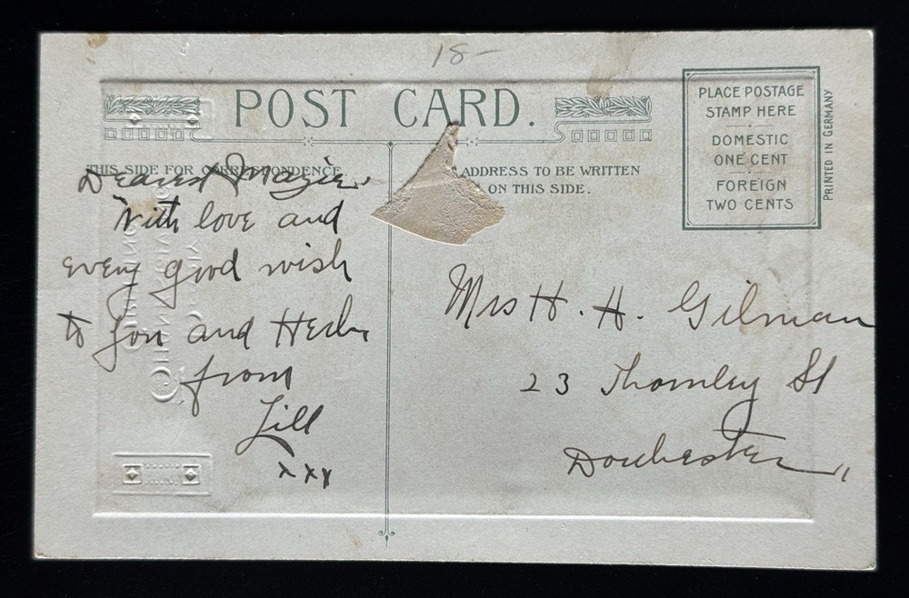 Timely communication, meticulous packaging including a thank you note, rapid shipping, postcard exactly as described, placed in a plastic sleeve which was secured in place with tape. I am 100% pleased with this merchant, highly recommend and would gladly do more business with same. Thank you!