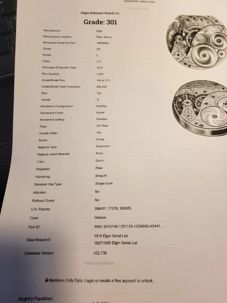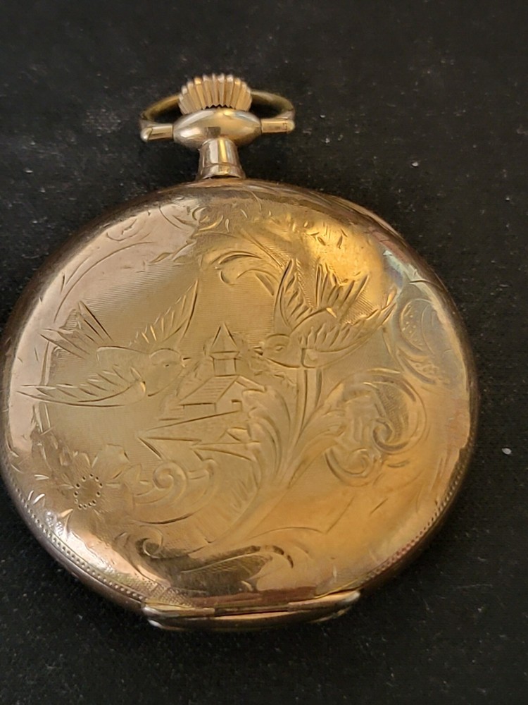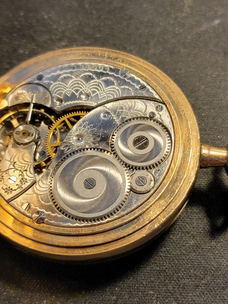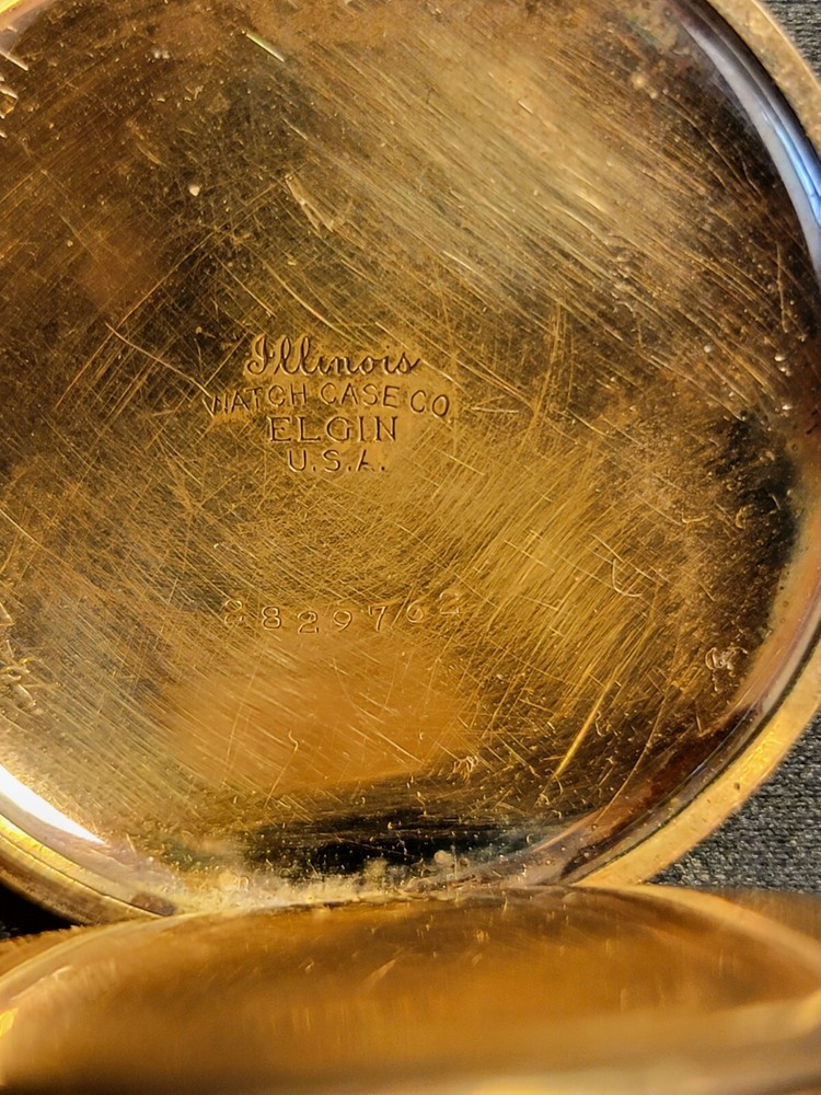 The 1915 Antique Illinois pocket watch with an Elgin movement is a rare and valuable piece of vintage timekeeping history. This men's pocket watch features a yellow gold case with a white dial and 7 jewels, reflecting the craftsmanship of the early 1900s. The Elgin movement inside ensures accurate timekeeping, making it a prized collector's item for watch enthusiasts and history buffs alike. It has been in my family for over 100 years and given to me about 20 years ago.