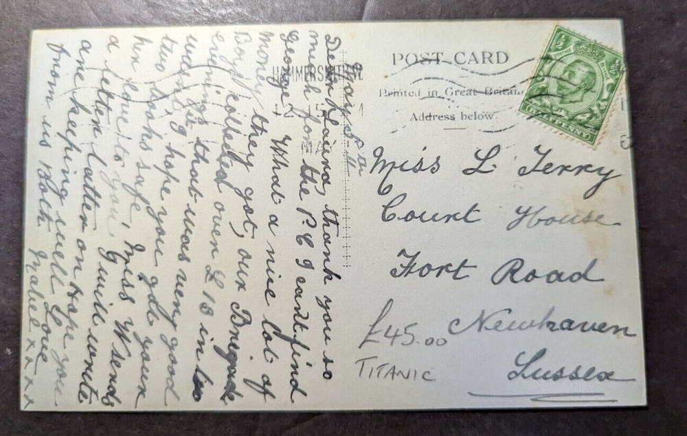 Up for Auction. Priced to Sell. Condition is as shown in photos. - Postal History - England RMS Titanic real picture postcard RPPC Postcard Cover White Star Line Steamer. Postmark is not clear but appears to be May, 1915. Will combine shipping on multiple purchases when requested.