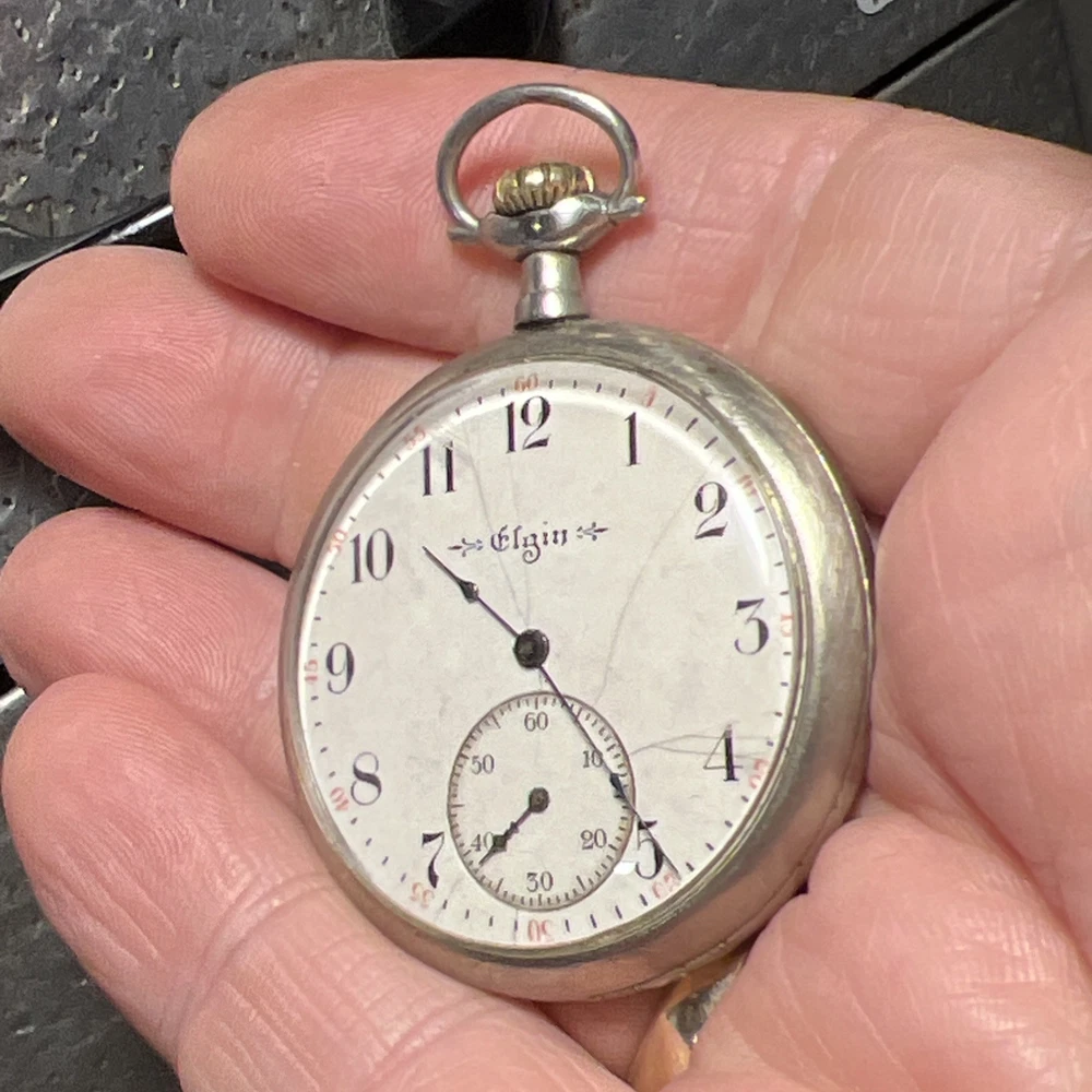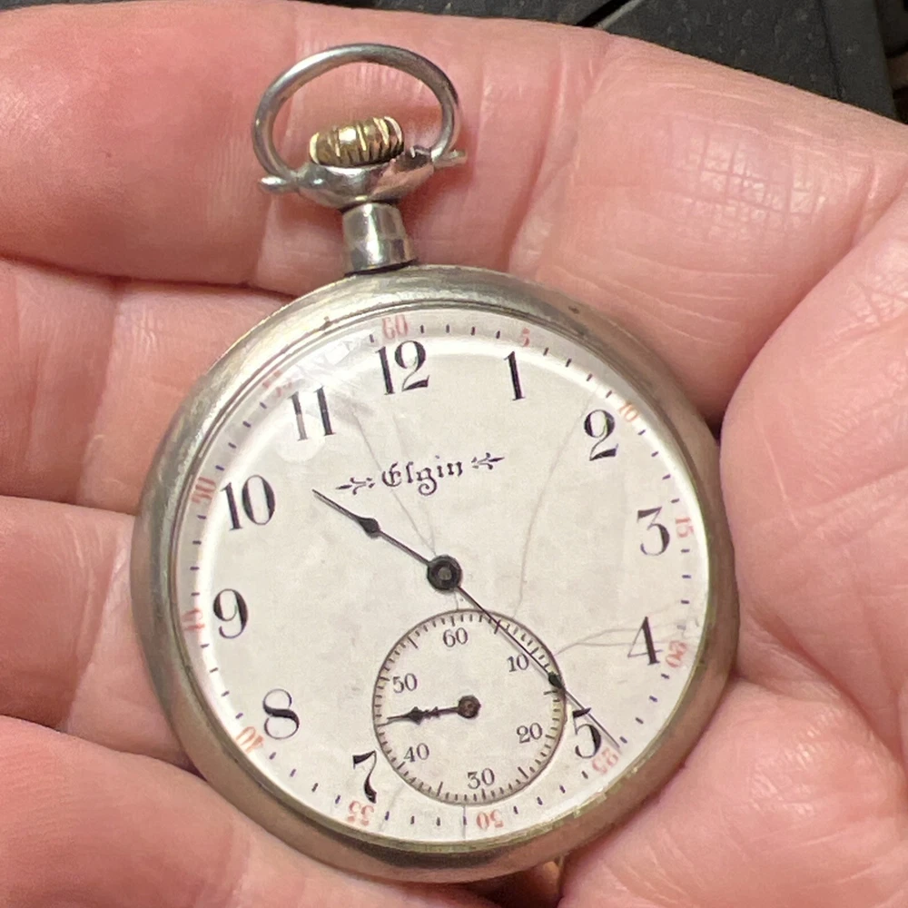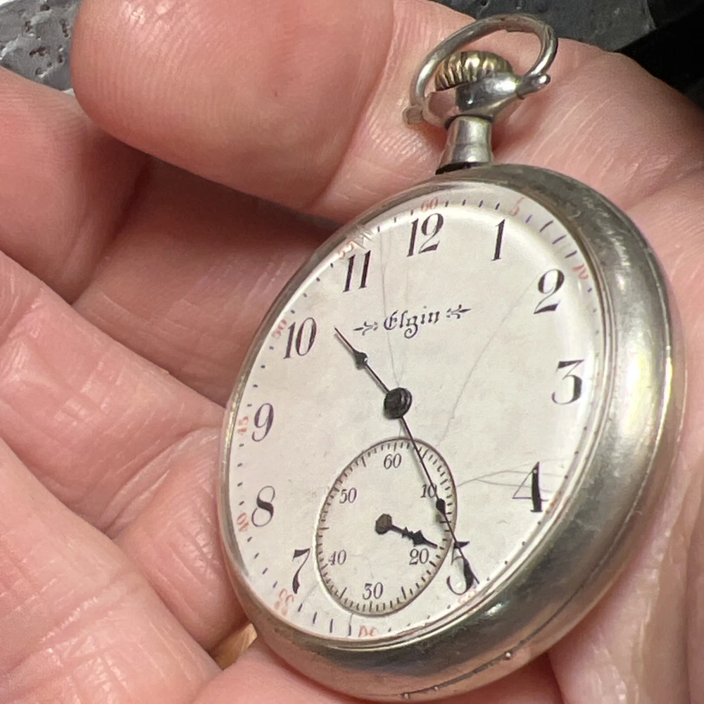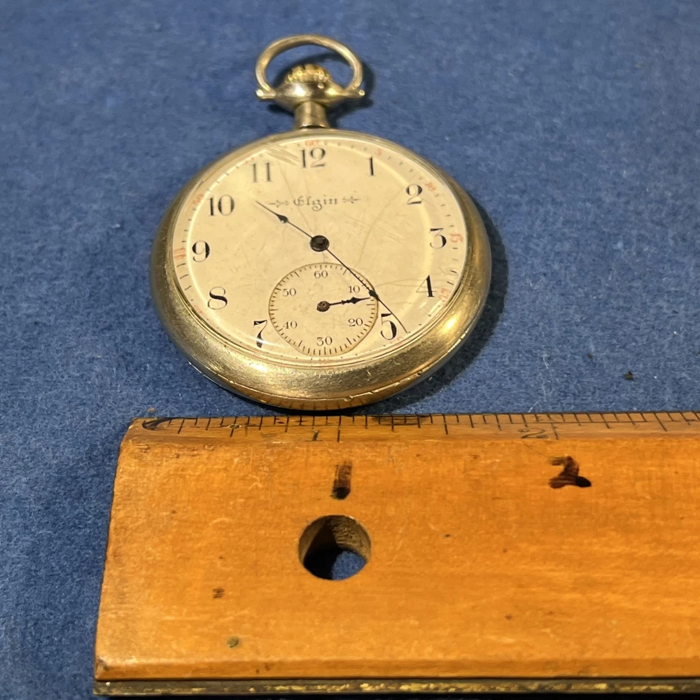 This vintage 1917 Elgin 12s pocket watch is a true piece of history! The golden-gilded 7-jewel movement still winds up smoothly, and the second hand runs beautifully—such a cool find for collectors. While the hour and minute hands need adjustment (they move when setting time but don't advance on their own), it’s a fantastic project watch or for parts. The 44mm open-face case has great character, and the Elgin heritage shines through. Perfect for someone who loves restoring timeless pieces!