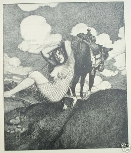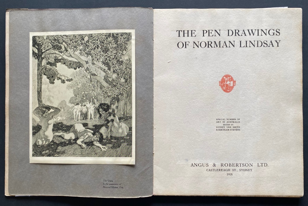Express Shipping Worldwide is Free Art in Australia The Pen Drawings of Norman Lindsay By Norman Lindsay Published by Angus & Robertson Ltd., Sydney, 1918 First and Limited Edition of 2,000 copies only With all 51 plates present. In the original publisher's binding being the decorated dustjacket over cardcovers. In 70 pages. There is light shelfwear and a couple of marks to the rear cover. There is very light scattered foxing to the first two leaves with no foxing to the plates or text. There is a previous owner's name to the front pastedown. There are no damaged, creased, loose or missing pages. All plates are present. The binding is firm. It is complete and original. This is the very first collection of Norman Lindsay's pen drawings and the rarest. There is an Introduction, essay, and "His Inspiration and Techniques" by Lionel Lindsay. 51 plates (complete with all the tissue guards). The plates are, in order of appearance: The Vista The Crucified Venus Dionysus Panurge meets Pantagruel Illustration to Shakespeare’s Henry IV (This drawing is dated 1896 – the year in which it was first exhibited; it was actually drawn in 1894, when Norman Lindsay was fifteen.) The Idylls of Theocritus Title Page for The Decameron of Boccaccio The Decameron (plate 8) The Decameron (plate 9) The Decameron (plate 10) The Pink Butterfly The Rivals Rabelais The Dancer The Spirit of the Earth The Idylls of Moschus Pollice Verso The Girl, the Boy and the Garden God Bacchanal The Great Water The Scoffers The memoirs of Casanova The Fruit Gatherers On the Tail of the Flight The Procession The memoirs of Casanova The Argument “Each Man fought for Himself” Satyrs Fighting The Story of the Abrolhos The Satyricon of Petronius Satyrs pursuing Nymphs The Embarkation The Lion Slayer The Bathers Gallantry The Spoilers Tom O’Bedlam (plate 38) Tom O’Bedlam (plate 39) Tom O’Bedlam (plate 40) The Raid Gold The Student’s Mistress The Poems of Villon (plate 44) The Witches The Poems of Villon (plate 46) The Apotheosis of Villon The Poems of Villon (plate 48) The Old Bachelor of Congreve Panurge and the Ladies of Paris Leon Gellert’s Songs of a Campaign Beautiful Norman Lindsay plates from 107 years ago. Measures 22cm x 28cm. EXPRESS SHIPPING AND HANDLING is Free Worldwide All items are securely and well packed. Thank you for viewing my item.