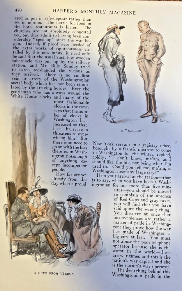 Vintage magazine illustrations removed from a vintage magazine published in 1918. Contains 13 pages and 14 illustrations. Page size approximately 6 inches x 9 inches. Would be great for addition to any vintage paper collection. SKU # 34214