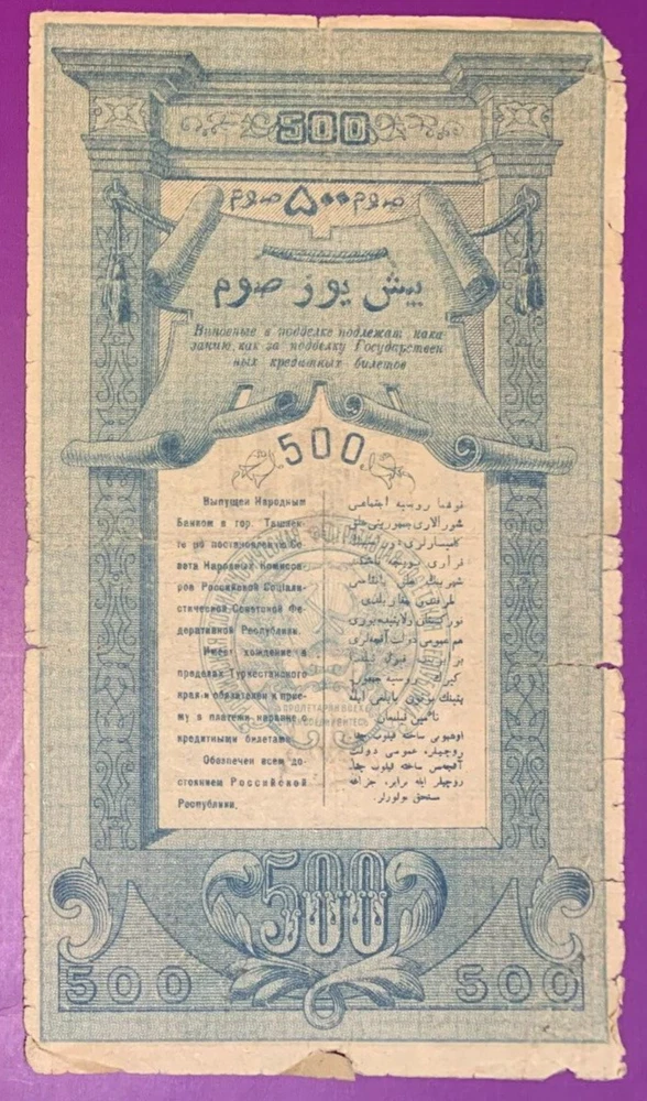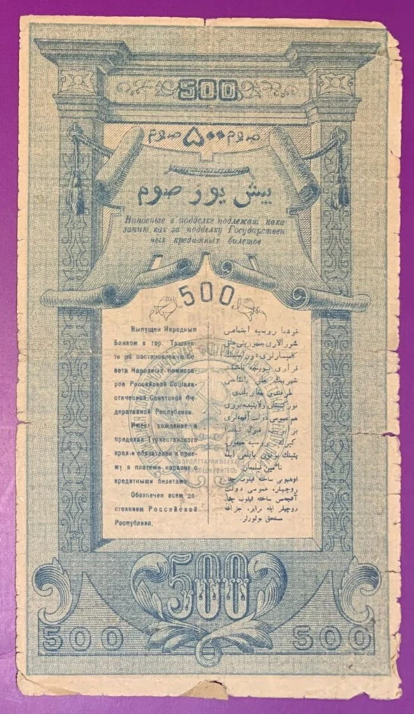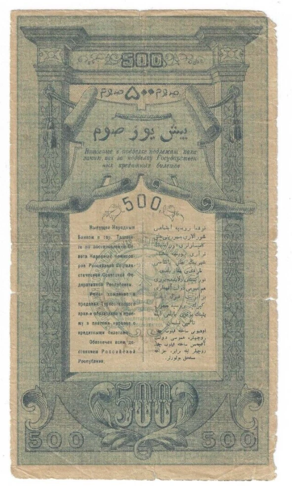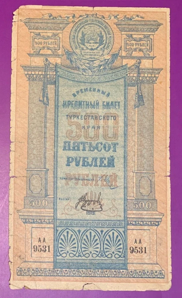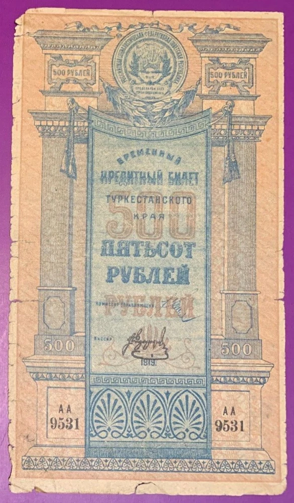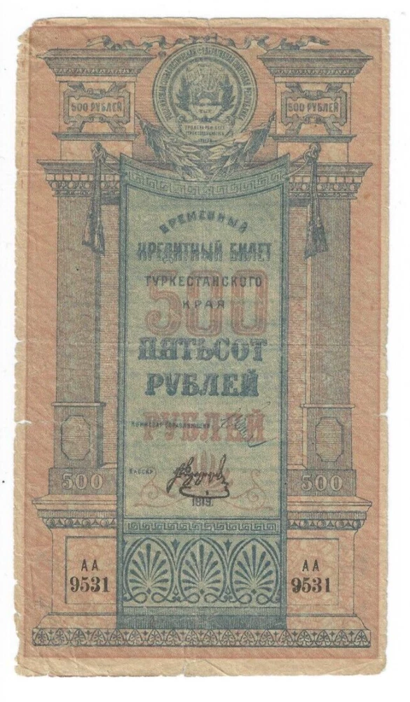 1919 500 rubles Civil war Russia Turkestan District lot # 39