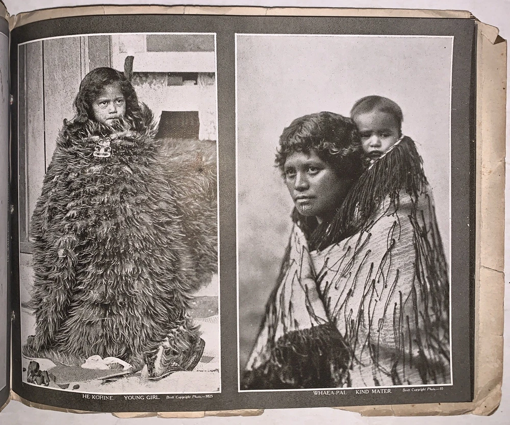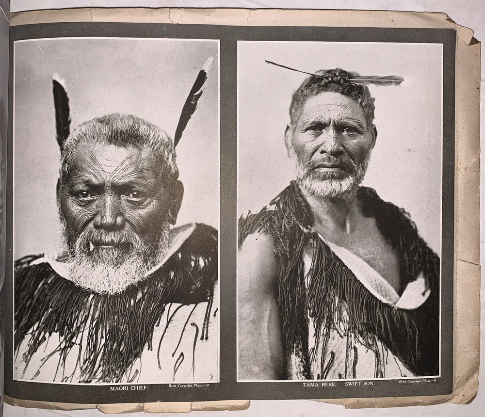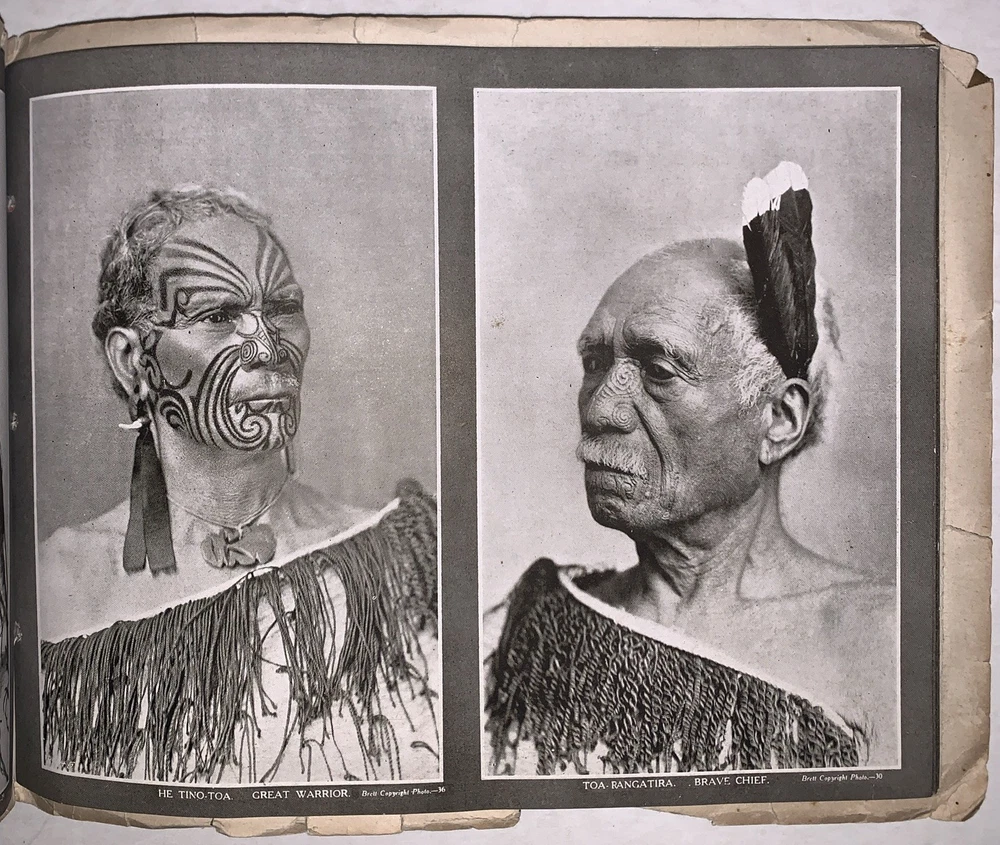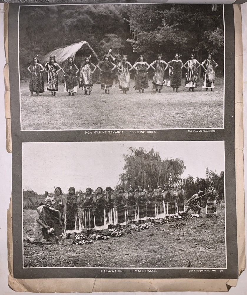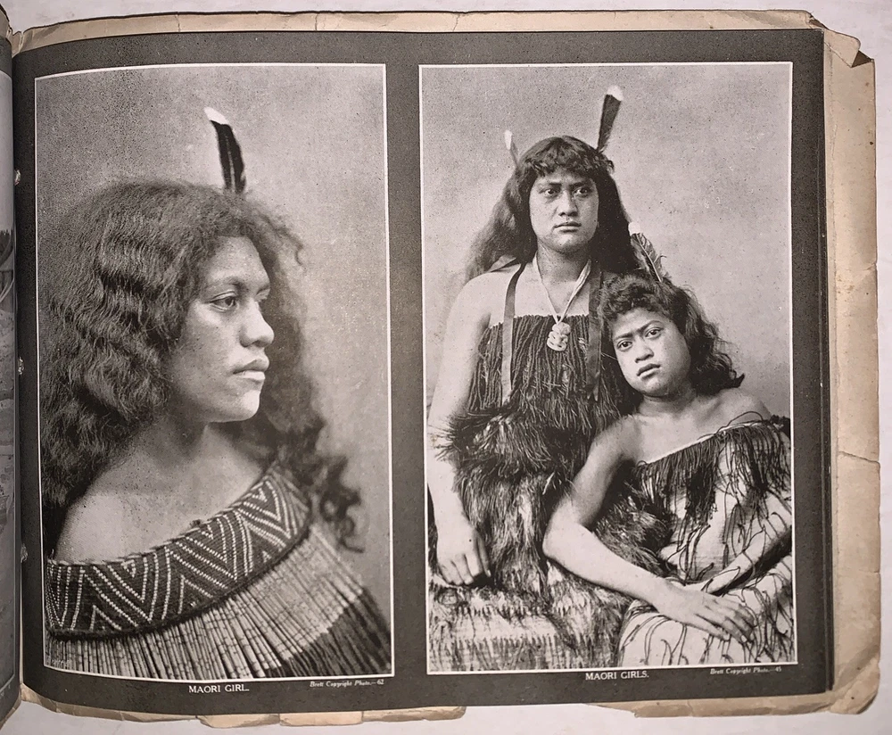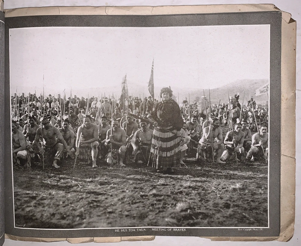 Te Oranga Māori Me Ōna Tikanga Rekareka - The Maori at Home With his Pleasures & Pastimes Auckland: Frank Duncan & Co. ND, [1920] First Edition Oblong octavo, 12 leaves with images on both sides, publisher's original tied wraps. Previous owner's inscription, some tears along edges of wraps, else in very good condition. Te Oranga Māori Me Ōna Tikanga Rekareka is an early 20th-century New Zealand pictorial booklet devoted to Māori daily life, customs, and recreations, issued with text in Māori and English. Translated roughly as “The Well-Being of the Māori and His Pleasant Customs,” the work presents a visual and descriptive record of traditional activities, social practices, and material culture at a moment when Māori life was increasingly being documented for both local and overseas audiences. Combining photographs or illustrations with explanatory captions, the book reflects contemporary ethnographic interests while also serving as a cultural snapshot produced within the Australasian world rather than by later academic institutions. Today it is collected for its documentary value, its bilingual presentation, and its place within early New Zealand publishing concerned with Māori culture and representation. If you have any questions, feel free to ask, and don't forget to check out my other listings.