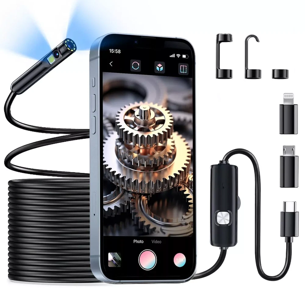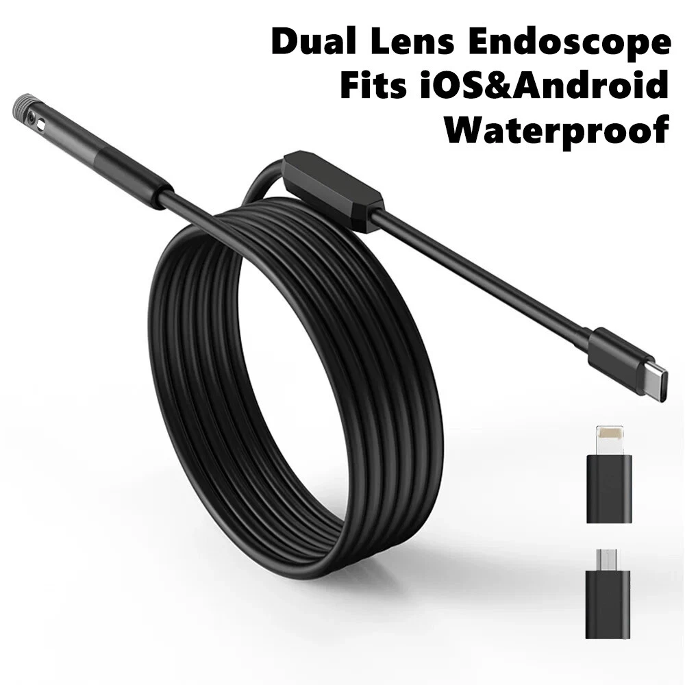 1920P Dual Lens Snake Inspection Borescope Type C iPhone Endoscope Scope Camera This item is the newest 3in1 dual lens endoscope camera with light, which can directly work with all iPhones or iPads or other OTG capable android phones. You just need to install the APP and simply plug the endoscope camera to your mobile devices, then you can view real-time images on the screen. It can be used for underwater camera, waterproof Micro-cameras, inside the car or around the engine, motor vehicle inspection, sewer pipeline inspection, search and rescue, criminal and custom detector, archaeological detect, the PCB detection, aviation and space industries, care and tractors industries, petroleum drilling industries, constructions and so on. Features : - 3M Pixel High Resolution CMOS Camera, HD 1920*1440P; Frame Rate: 30FPS - Switchable dual-lens inspection camera, long press to switch lenses for better viewing. - Semi Rigid endoscope camera cable which can bend and hold its shape. - Directly plug and play, easy to connect and use; - 8+1 Led Lights, brightness adjustable, which enable you to obtain picture information even in dark environment; - IP68 Waterproof Design (for camera lens only); - Support photo taking and video recording on mobile phone; - Camera Head OD: 7.9mm - Viewing Angle: 70 degree - Effective Focal Distance: 4cm-10cm (The best viewing distance) - Support System: iOS / Android - Support Pictures Format: JPEG - Support Video Format: MP4 - Working Temperature: 32 to 113 degrees Fahrenheit (0 to 45 degrees Celsius) Compatible Models : For iPhone 16/Plus/Pro/Pro Max For iPhone 15/Plus/Pro/Pro Max For iPhone 14/Plus/Pro/Pro Max For iPhone 13/Mini/Pro/Pro Max For iPhone 12/Mini/Pro/Pro Max For iPhone 11/Pro/Pro Max For iPhone X/Xs/Xr/Max For iPhone 8 /8 Plus For iPhone 7 /7 Plus For iPhone 6/6 Plus/6S/6S Plus For iphone 5/5 Plus/5S/5S Plus For all iPad Series For Samsung Galaxy S24/S24+/S24 Ultra 5G For Samsung Galaxy S23/S23+/S23 Ultra 5G For Samsung Galaxy S22/S22+/S22 Ultra 5G For Samsung Galaxy S21/S21+/S21 Ultra 5G For Samsung Galaxy S10/S11/S20/S20+/S20 FE 5G For Samsung Galaxy Note 8/9/10/20 Ultra 5G For Samsung Galaxy Z Fold Flip 5/4/3/2 For other OTG capable android phones. Package Includes : 1X Dual Lens Endoscope Camera Cable 1X Small Hook 1X Magnet 1X Protective Cap 1X User Manual Item will be sent out by USPS or other carrier accrodingly. No local pickup. We reserve the right to change the shipping method without notifying customers. We have multi-warehouses in NY/CA/KY/TX,so your item may not be sent from the warehouse which stated in the item location. We accept online payments managed by eBay. Please send us a eBay message if there is any problem with your order before leaving us a negative feedback/low DSR rating/opening a return case, we will reply within 24 hours.