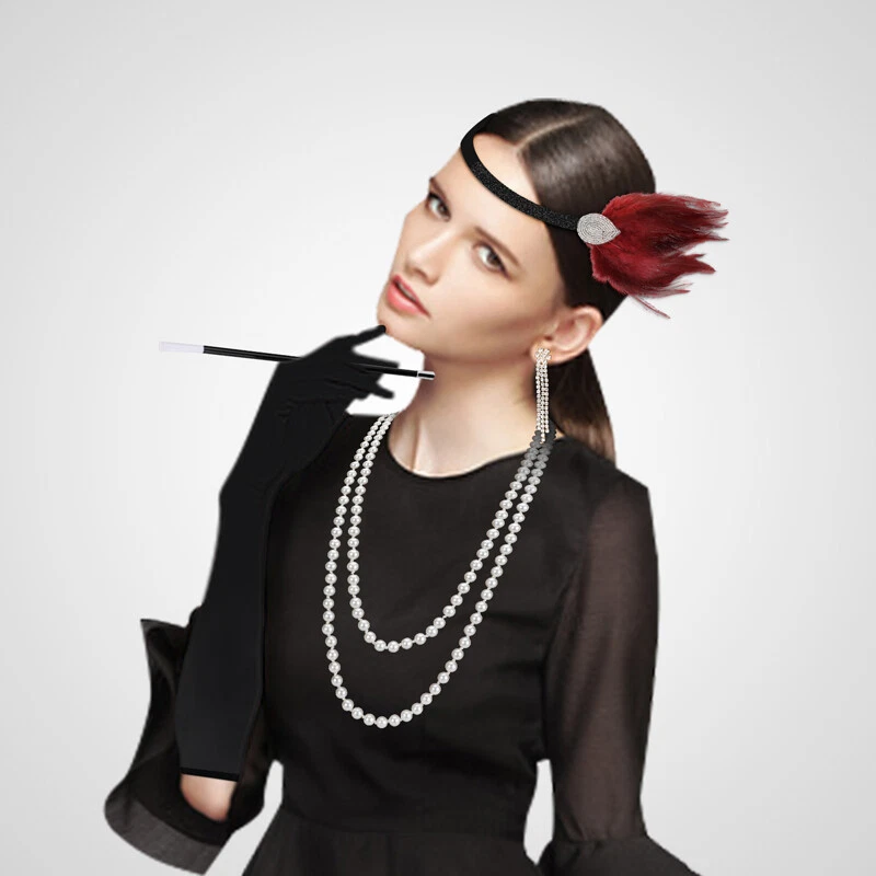 1920S Great Gatsby Accessories 5Pcs/Set For Women Costume Flapper Headpie Medium 1920S Great Gatsby Accessories 5Pcs/Set For Women Costume Flapper Headpie Medium 100% Brand New & Excellent quality Fast & Free shipping from NJ, US Features: * Complete Costume Accessories include:Elastic headband,Black Elbow length satin gloves,Artificial Pearl necklace,and Prop Smoking Rod. * One size fits most. * Black smooth stretch elbow gloves. Stretchy and easy to put on(Wash&Care: Machine washable, hand wash recommended, wash dark colors separately) * Elegant long pearl necklace * Lightweight black cigarette holder is fully workable with real/fake cigarette * Golden Retro dangle earrings,vintage and stunning design,embellish your grace properly. * Elegant chic design and Great Gatsby style for the Roaring 20s,to make you look more charming,special and beautiful in the crowd. * It is absolutely perfect for Hen Nights,Themed Parties,Peaky blinder nights or Completing An Evening Outfit Specifications: * Material: Spandex stretch fabric+Plastic+Feather+Alloy+Artificial pearl bead * Color:Black+White+Gold+Red * Headband length:43inch/110cm * Satin Gloves: Length: 17.3inch/44cm. Palm width: 3.3-3.9 in/8.3-10cm. * Arm perimeter: 9-11 in/ 23-28cm Made of stretch fabric material * Pearl Necklace Length:180cm,bead size:8mm * Cigarette Holder length: 13.4 in/34cm. * Earrings length:2.7inch/7cm Package includes: 1 x Elastic headband 1 Pair x Gold Earrings 1 Pair x Black elbow satin gloves 1 x Artificial pearl necklace 1 x Cigarette holder Payment Shipment Return Feedback Contact us Payment * We Accept Payment via PAYPAL ONLY . * Payment Must be Made within 4 Days of Auction Closing. * Non-Payment may Result in a UPI (Unpaid Item) being Put on Your Account. eBay will Automatically Close Your Account if You Accumulate 4 UPI's total. * Please List Your Special Requests ( Color, Size, Packages, etc. ) in the PAYPAL NOTES SECTION when you make payment. Shipment * Shipping will be handled in 24 business hours after payment got. Ship to PayPal Address only , please confirm it before paying. * Please leave your phone number in the address in case there is an address problem. Return * Returns and Exchange accepted within 60 Days. * Refund will be given as Money Back. * Free Return shipping. * Before you return the defective item,please email us for the RMA, and we will reply you in 24 hours in working days. If you do not get reply please check if your mail box has refused our reply or not, then send to us again, thanks! Feedback If you are satisfied with the transaction please remember to leave us a positive feedback (5-Star) will be much appreciated. Please DO remember to contact us before leaving the neutral, negative feedback or opening a case/dispute if any problem caused by the item . Normally your email would get replied within 24 hours and your issue would be followed up carefully until we've reached a consensus! We are not only selling good items, but also selling with excellent after-sale service and a strong sense of responsibility. We will always try our best to find you a satisfactory solution if any problem takes place! Contact us Email muchbuy-outlet at Paypal registered email or ebay message.