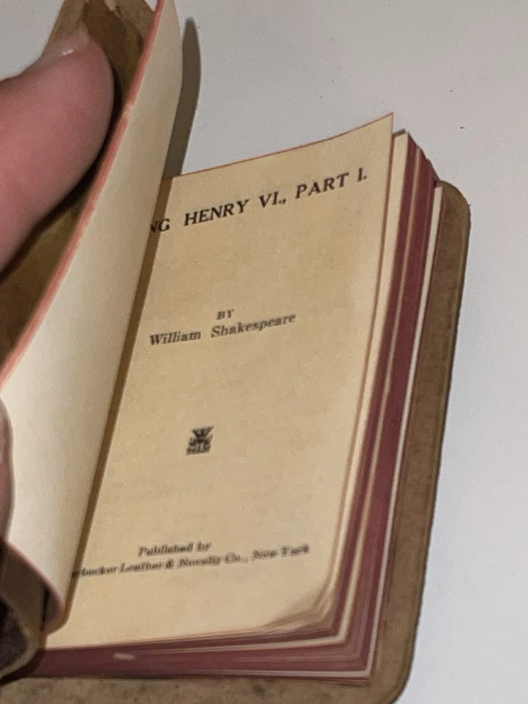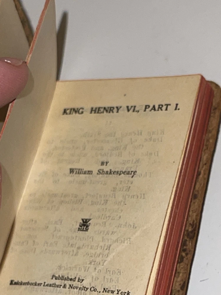 Good, preowned condition Antique 1920’s William Shakespeare Mini Book King Henry VI Part I Set Of 2 Please see all photos for the exact condition and item you will be receiving. Please note there is slight wear on one of the bindings and some damage to the cover of one of the books. All blemish is shown in the photos. Please feel free to request any additional photos or ask any questions